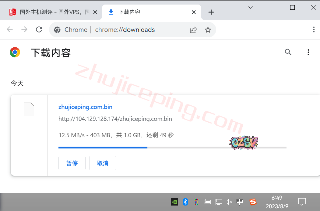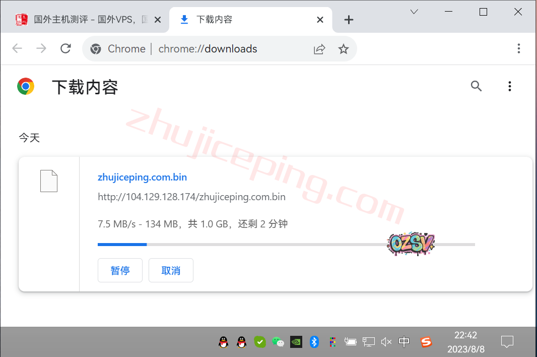 存放在测试用的云服务器上的文件,广州联通家庭宽带,下载速度: