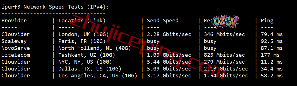 iperf3测试部分欧洲节点的效果: