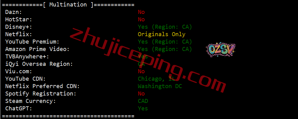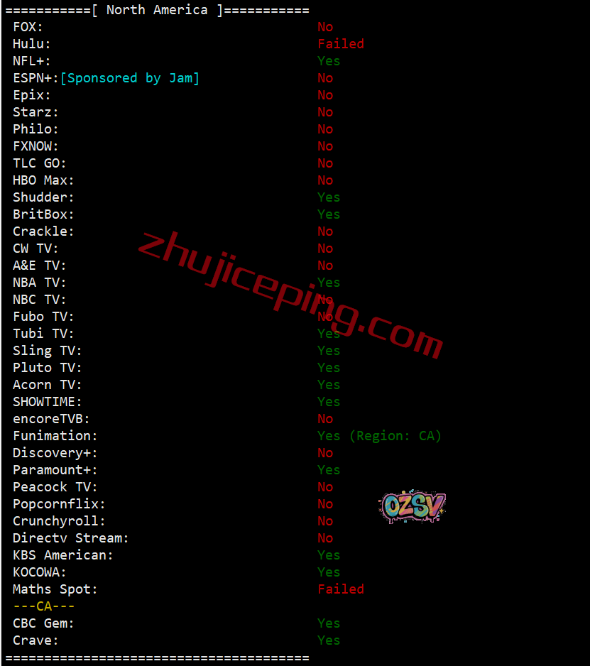 部分北美流媒体解锁测试: