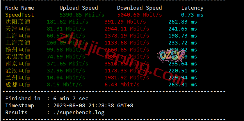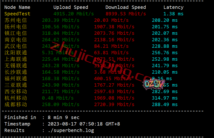 用speedtest的国内三网节点跑一圈上下行,大致数据如下: