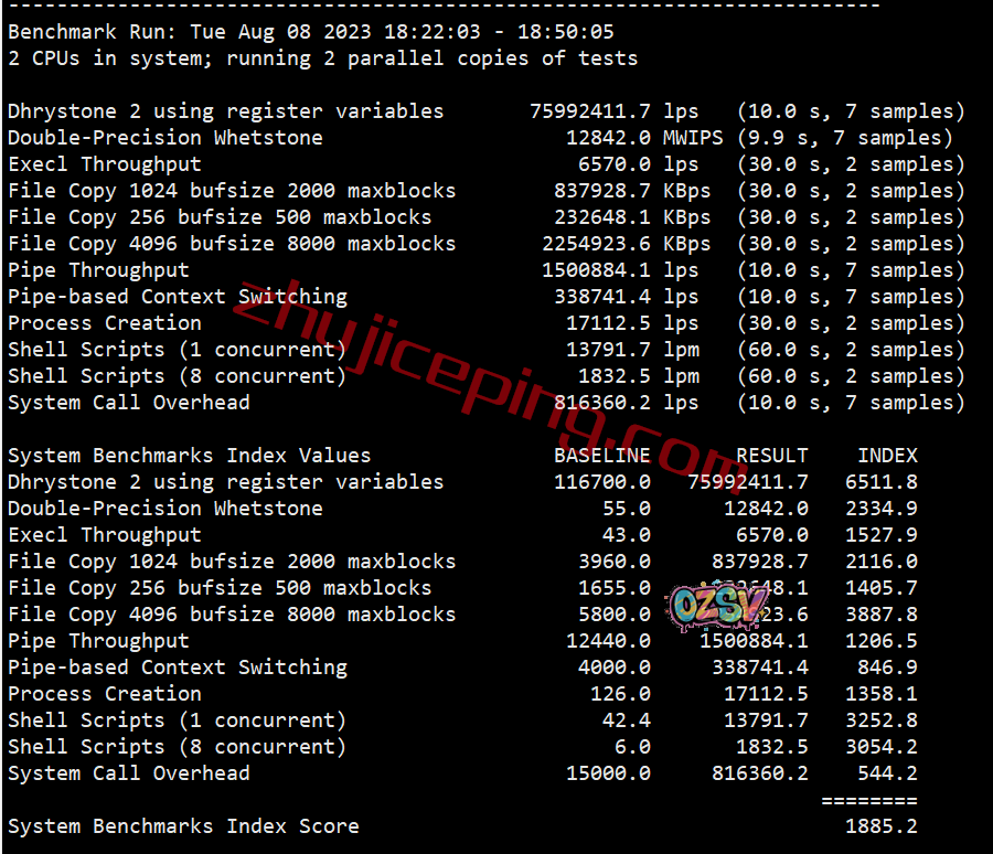 云服务器性能测试,部分测试结果: