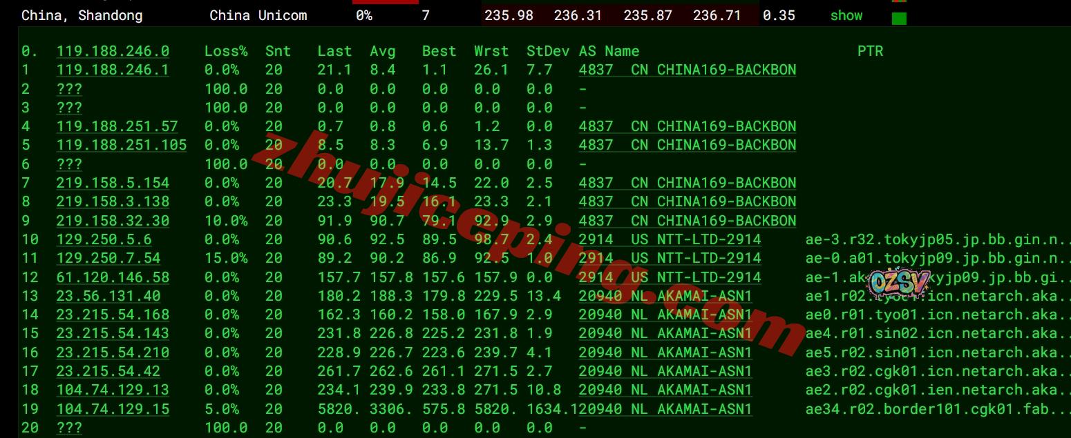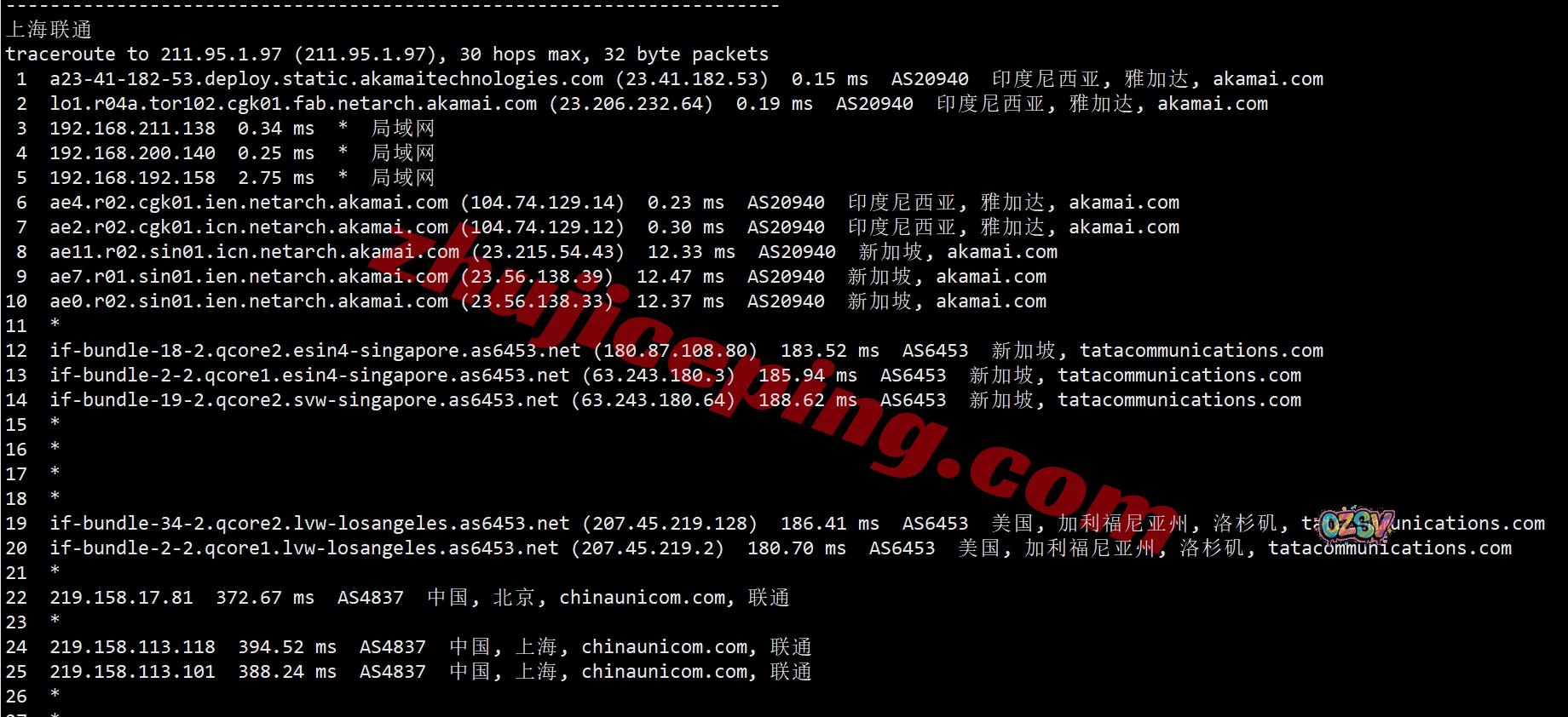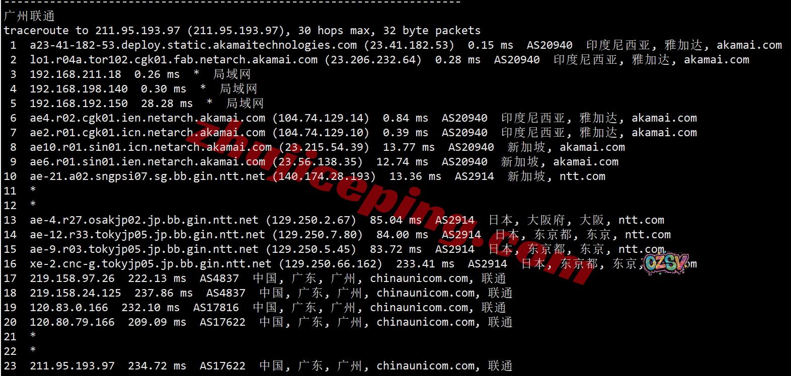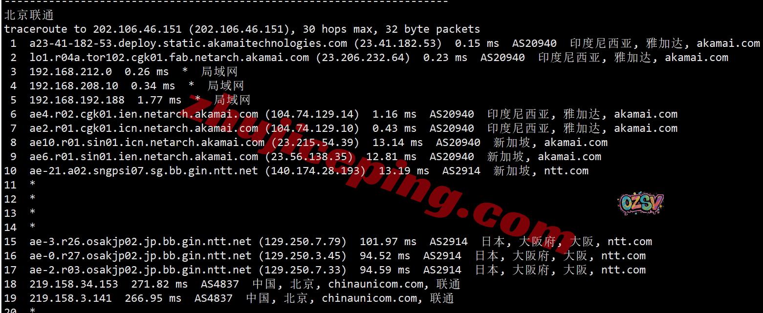 联通去程:走联通接NTT经过日本转akamai内网去新加坡再去印尼