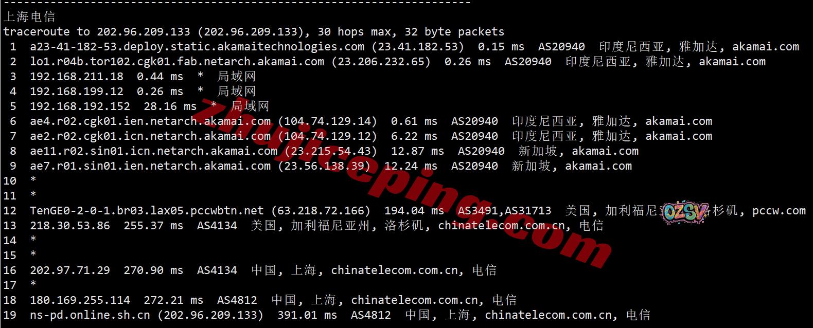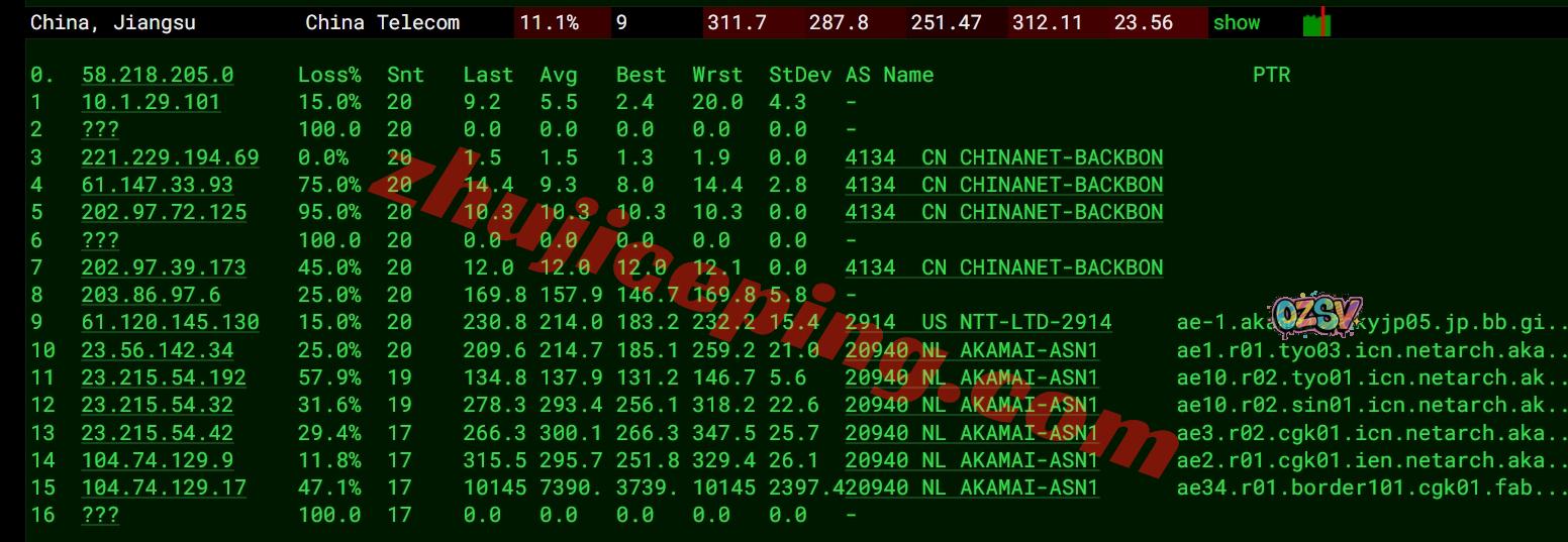 电信去程:骨干网接NTT去日本然后转akamai内网去新加坡再去印尼