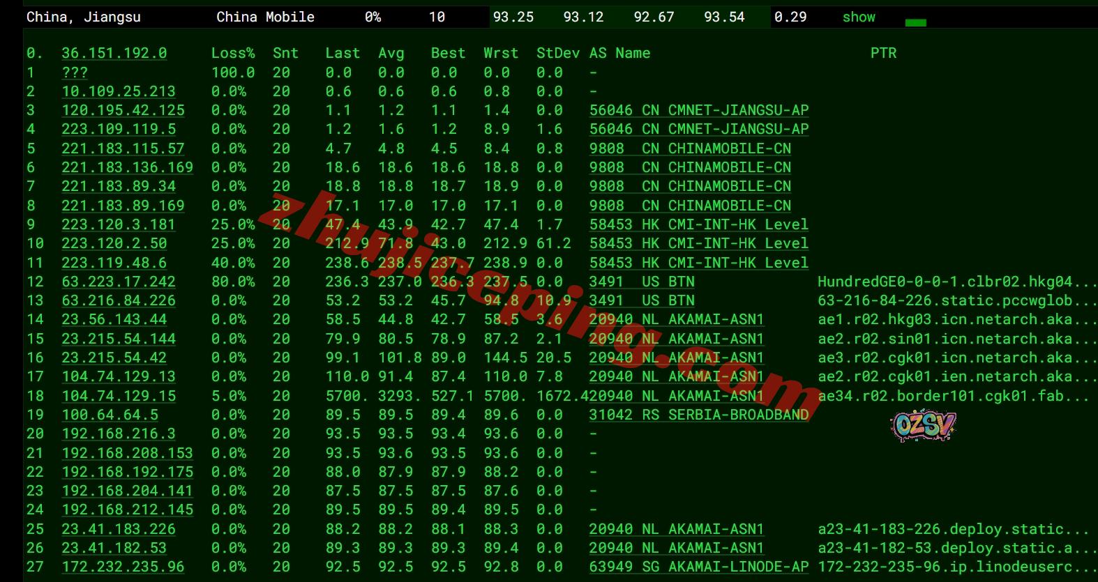移动回程:走akamai直连新加坡,从移动新加坡节点直连香港回内地