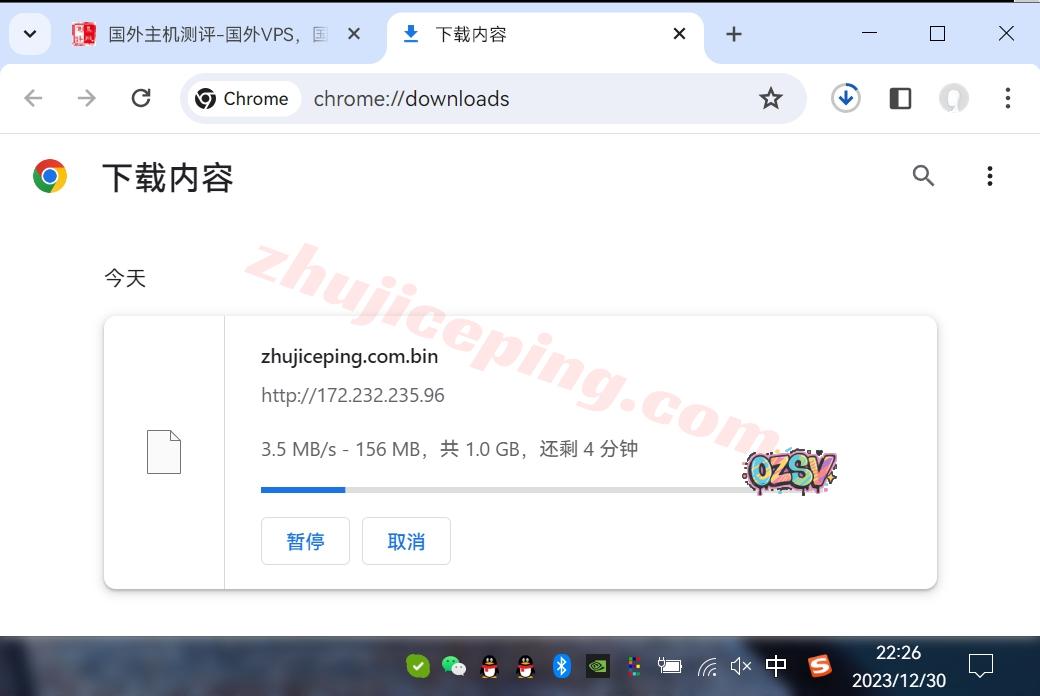 存放在测试云服务器上的文件,广州联通家宽直接用浏览器下载,我们看看速度: