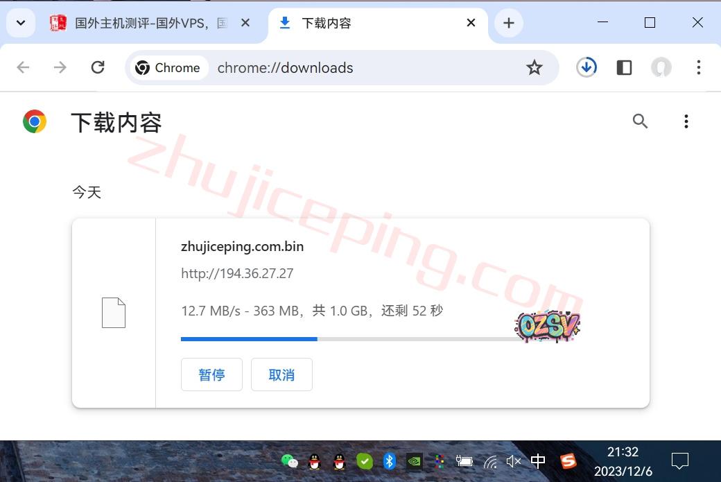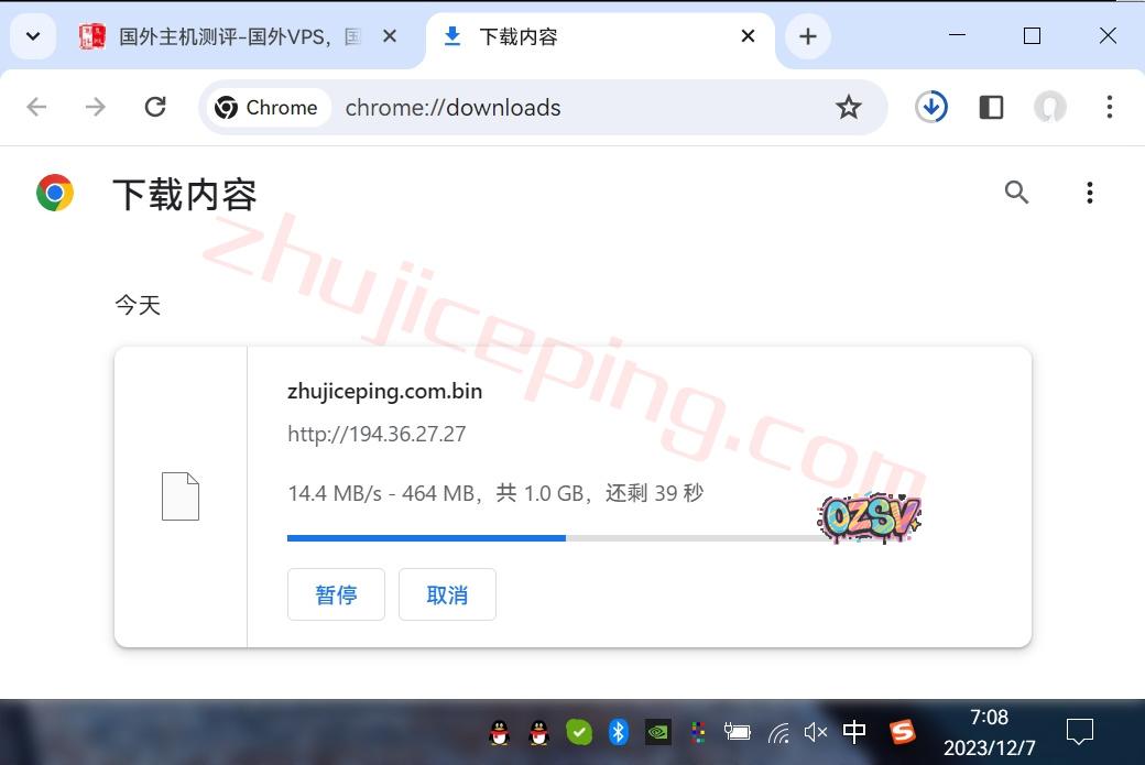 存放在测试小鸡上面的文件,广州联通,家宽,直连浏览器下载,大致速度: