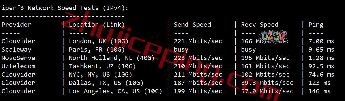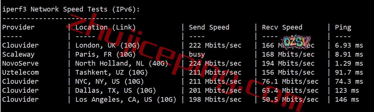 iperf3,IPv6环境下,测试几个欧美节点的效果:
