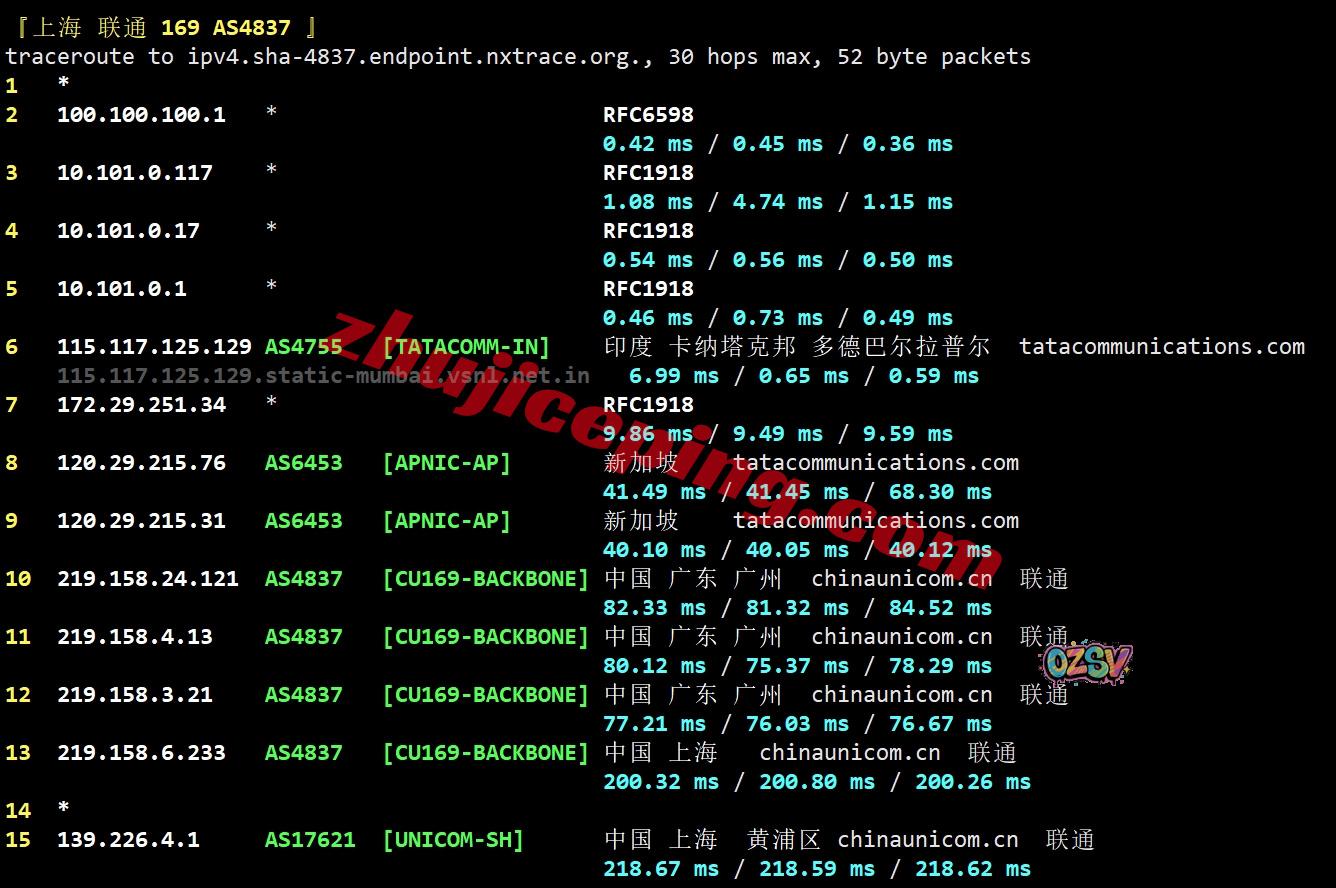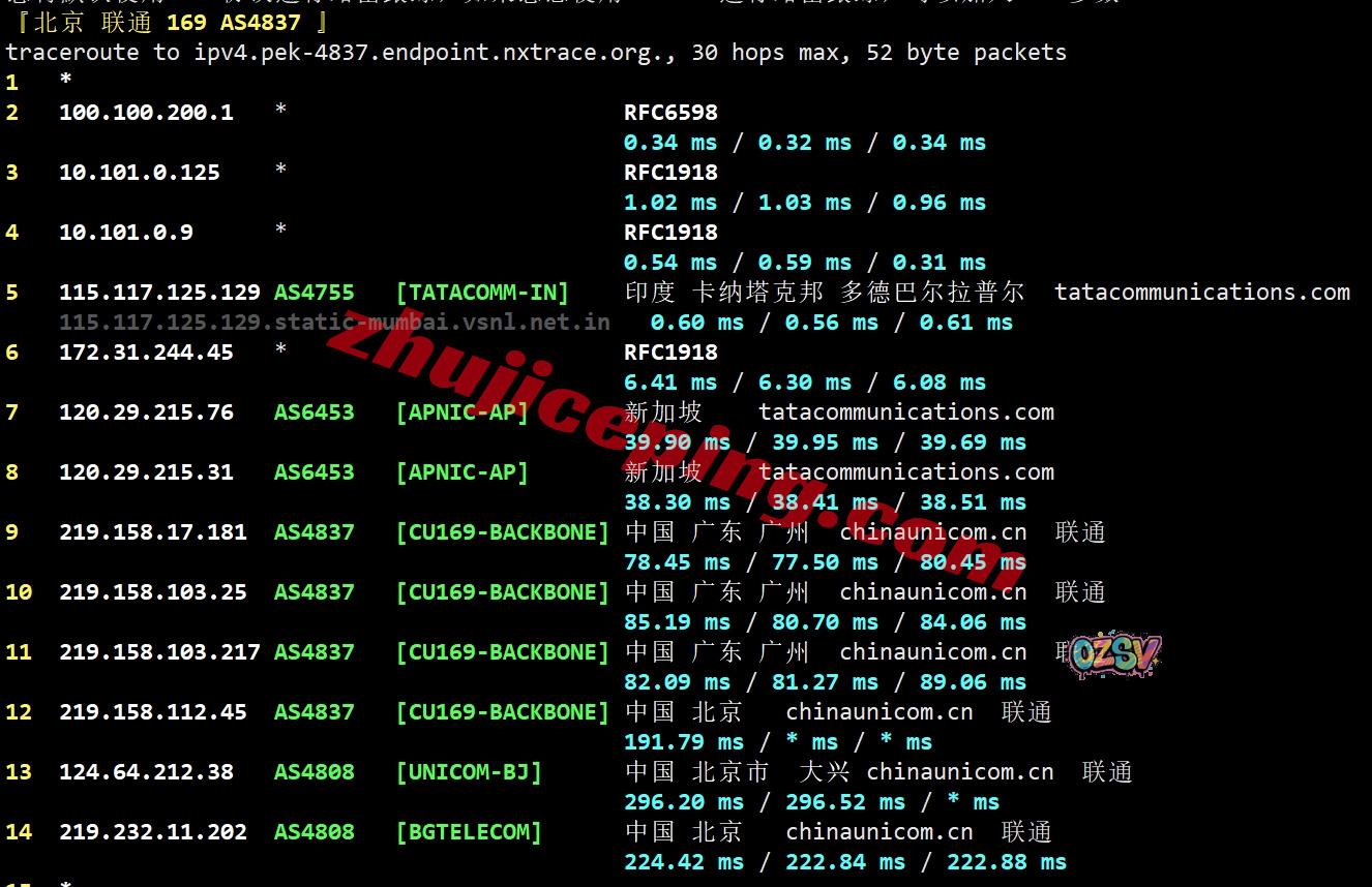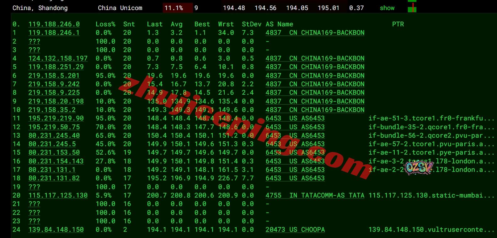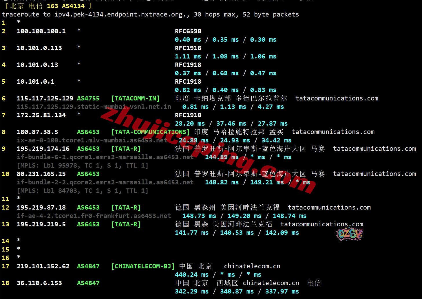 联通去程:直连联通德国法兰克福节点然后走tata去法国、英国直接去印度
