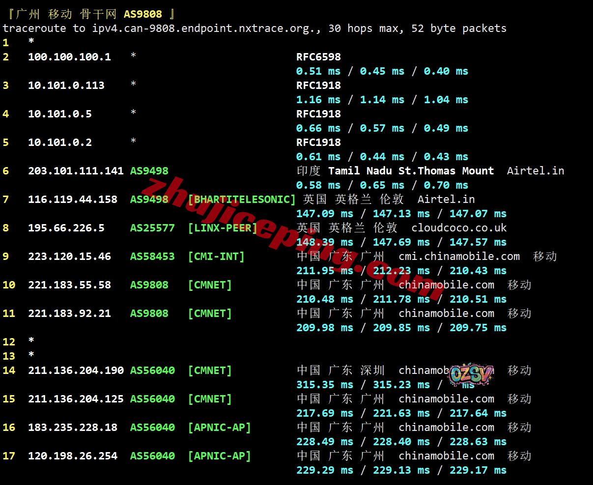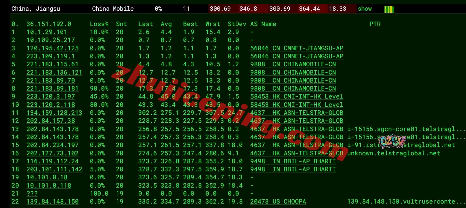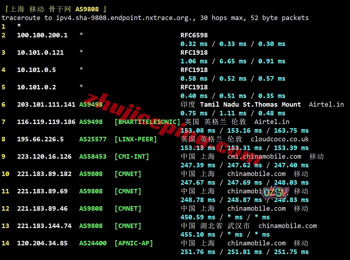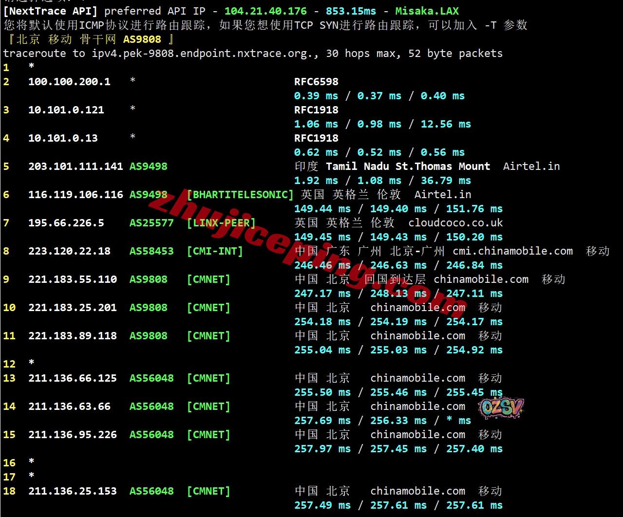移动去程:走CMI直接去香港后转Telstra(这傻逼延迟)然后去新加坡再到印度