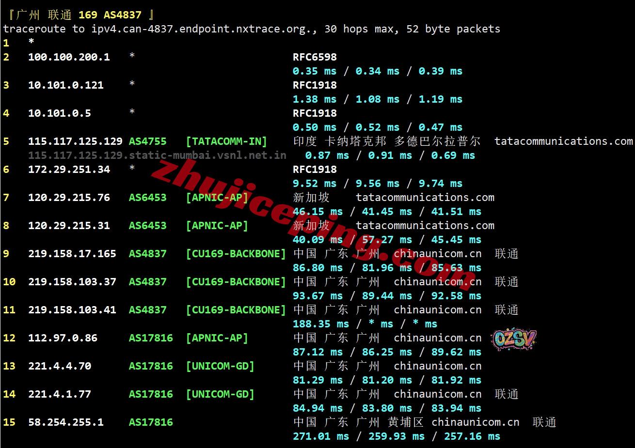 联通回程:走tata直接到新加坡然后回广州,延迟不到80毫秒,难怪前面广州联通下载测速能飞起来