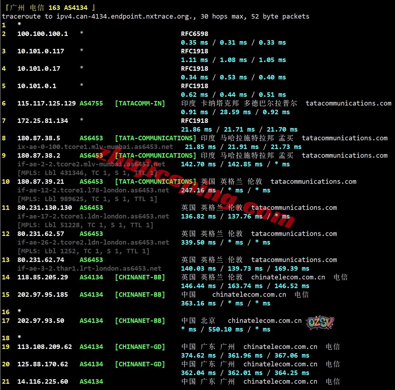广州方向:走tata去英国,电信英国伦敦节点直连回国