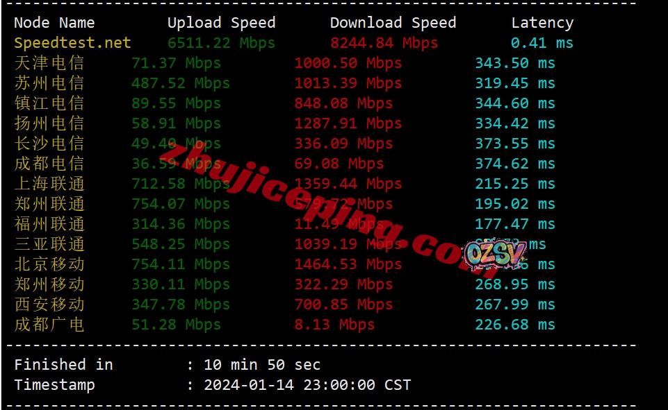 国内三网多节点测试上下行带宽,白天的大致数据如下: