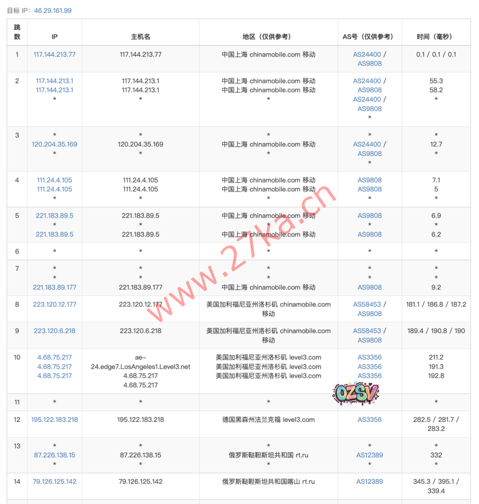 11  221.183.89.33  319.34 ms  AS9808  China, Shanghai, ChinaMobile