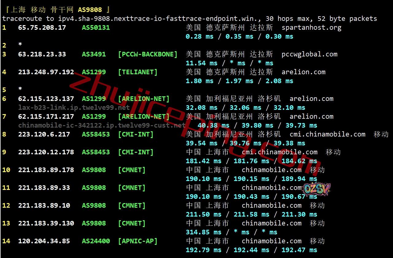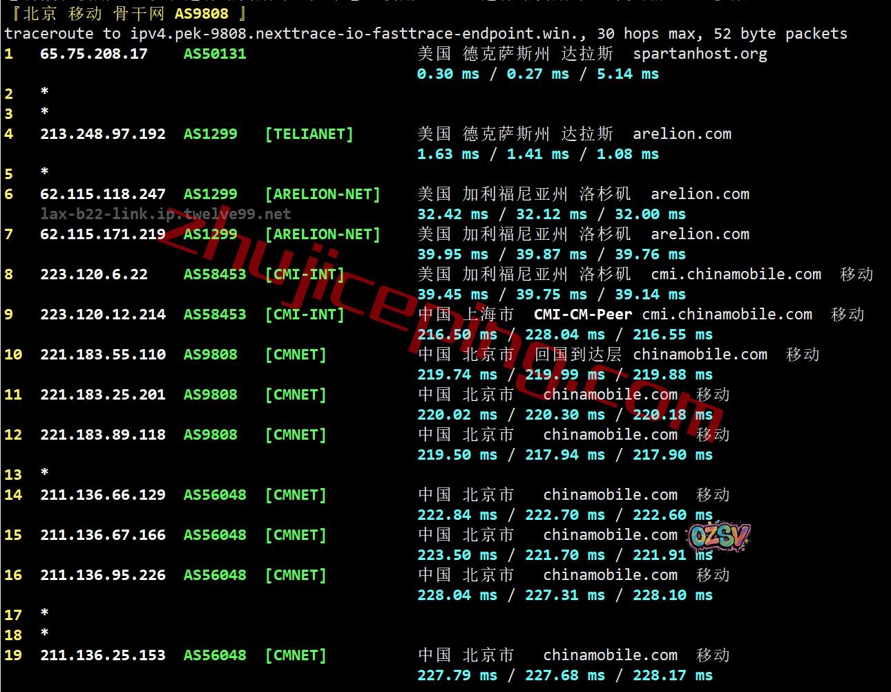 北京/上海方向:走twelve99到洛杉矶,从移动洛杉矶节点直连回国