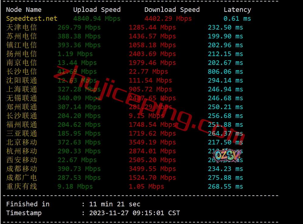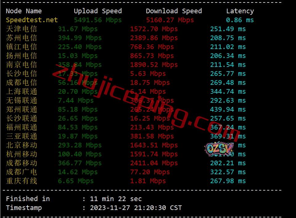 speedtest跑一圈,先看看国内三网多节点的上下行带宽测试数据:
