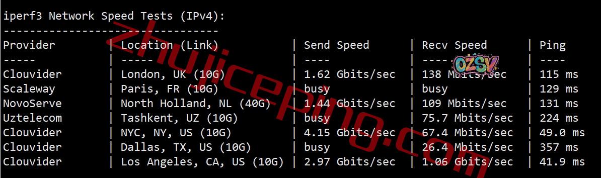 iperf3测试部分欧美节点的数据: