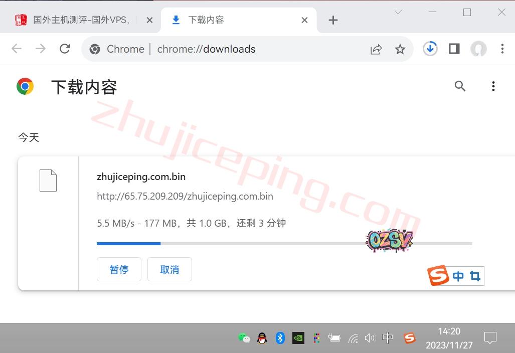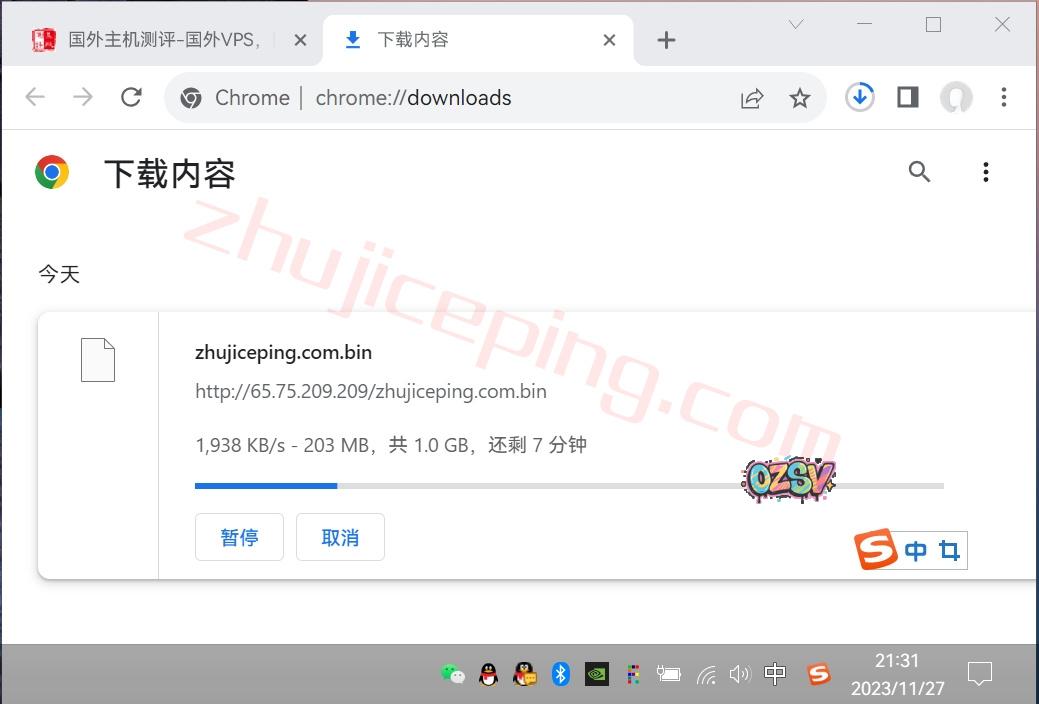 存放在VPS上的文件,广州联通直接浏览器下载,大致速度如下:
