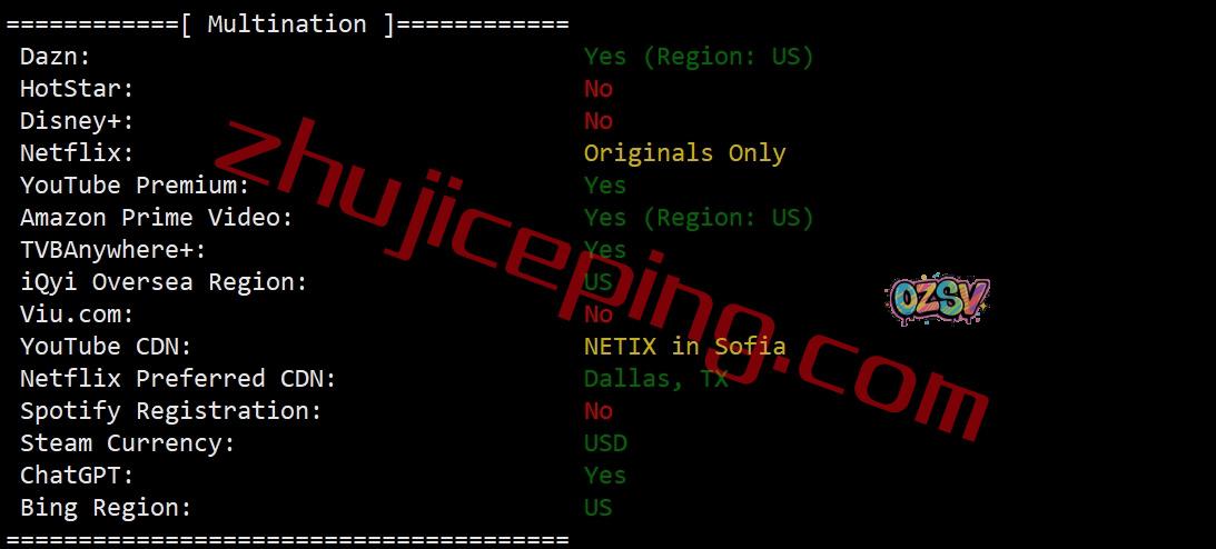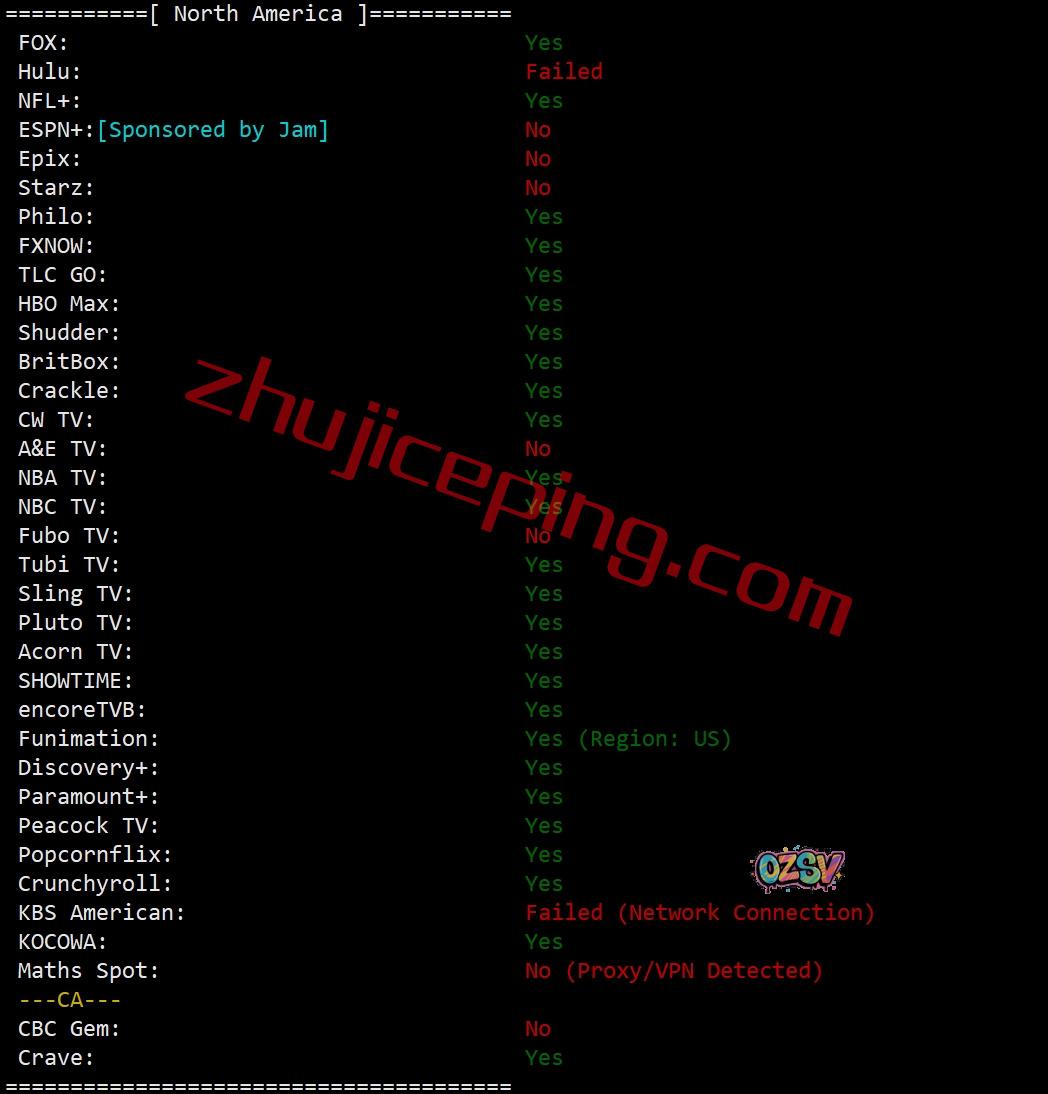 部分北美流媒体解锁测试结果: