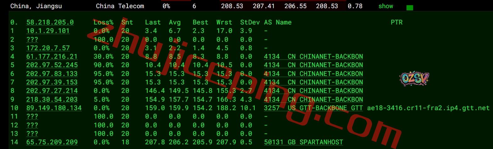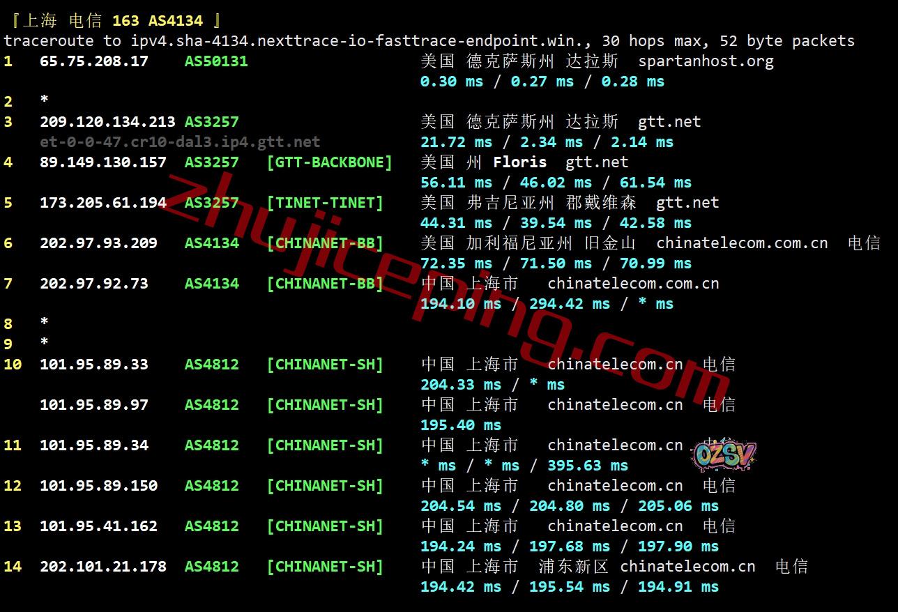 电信去程:直连电信圣何塞节点然后走GTT去达拉斯