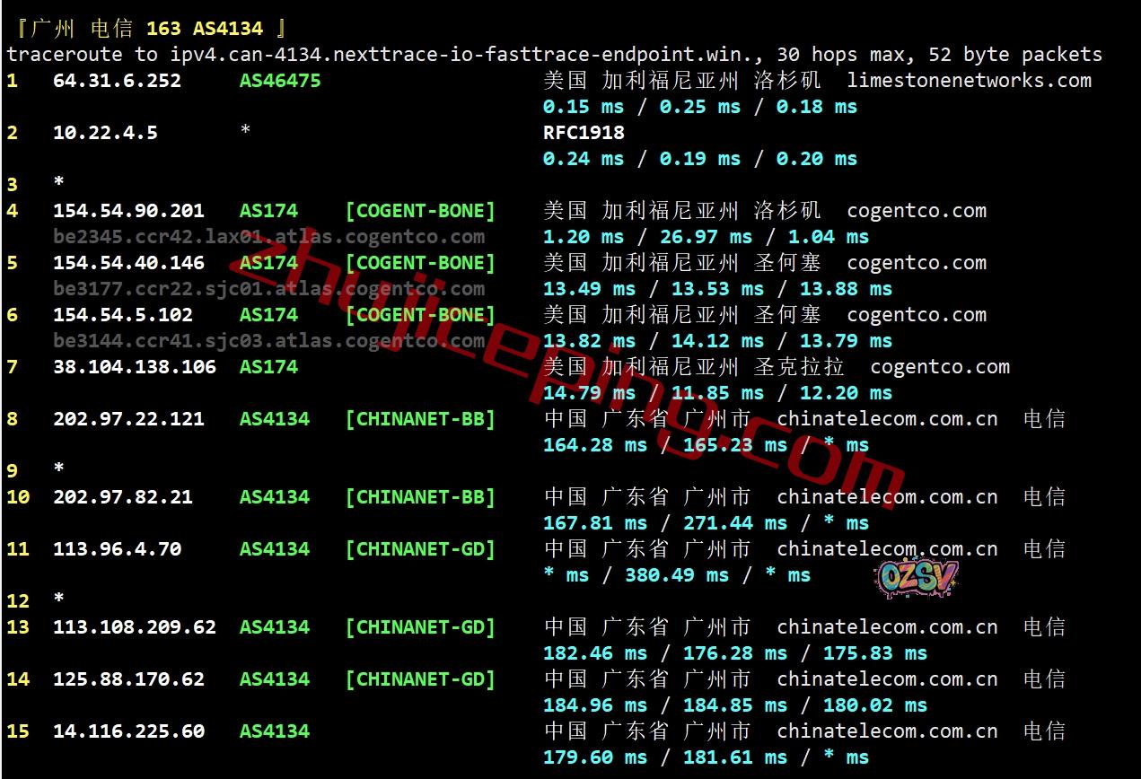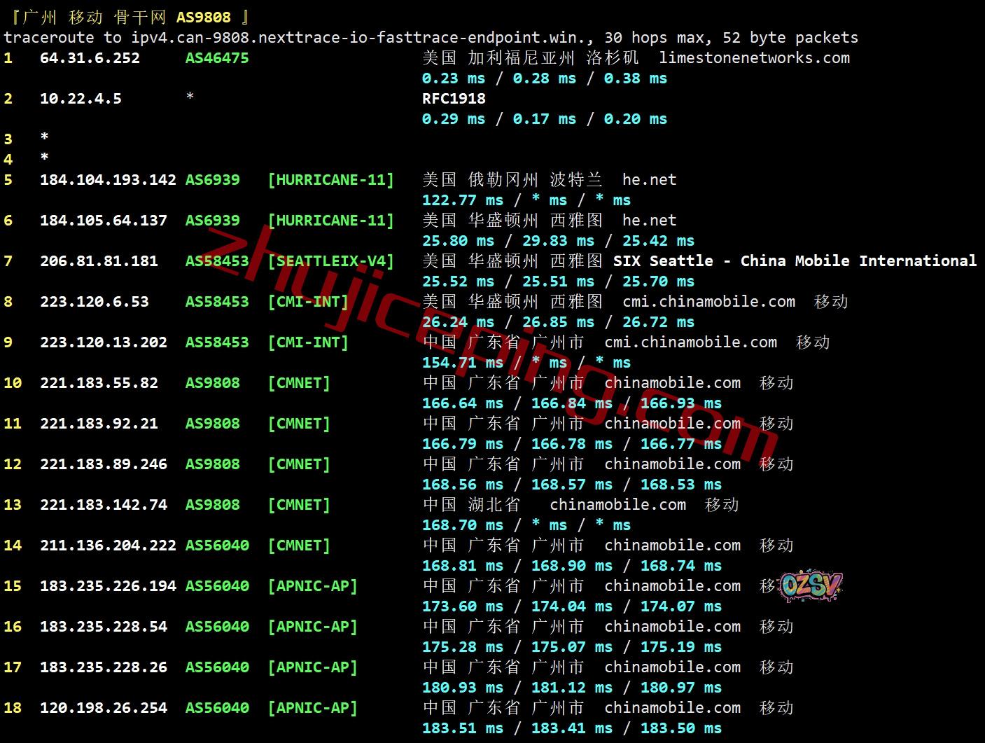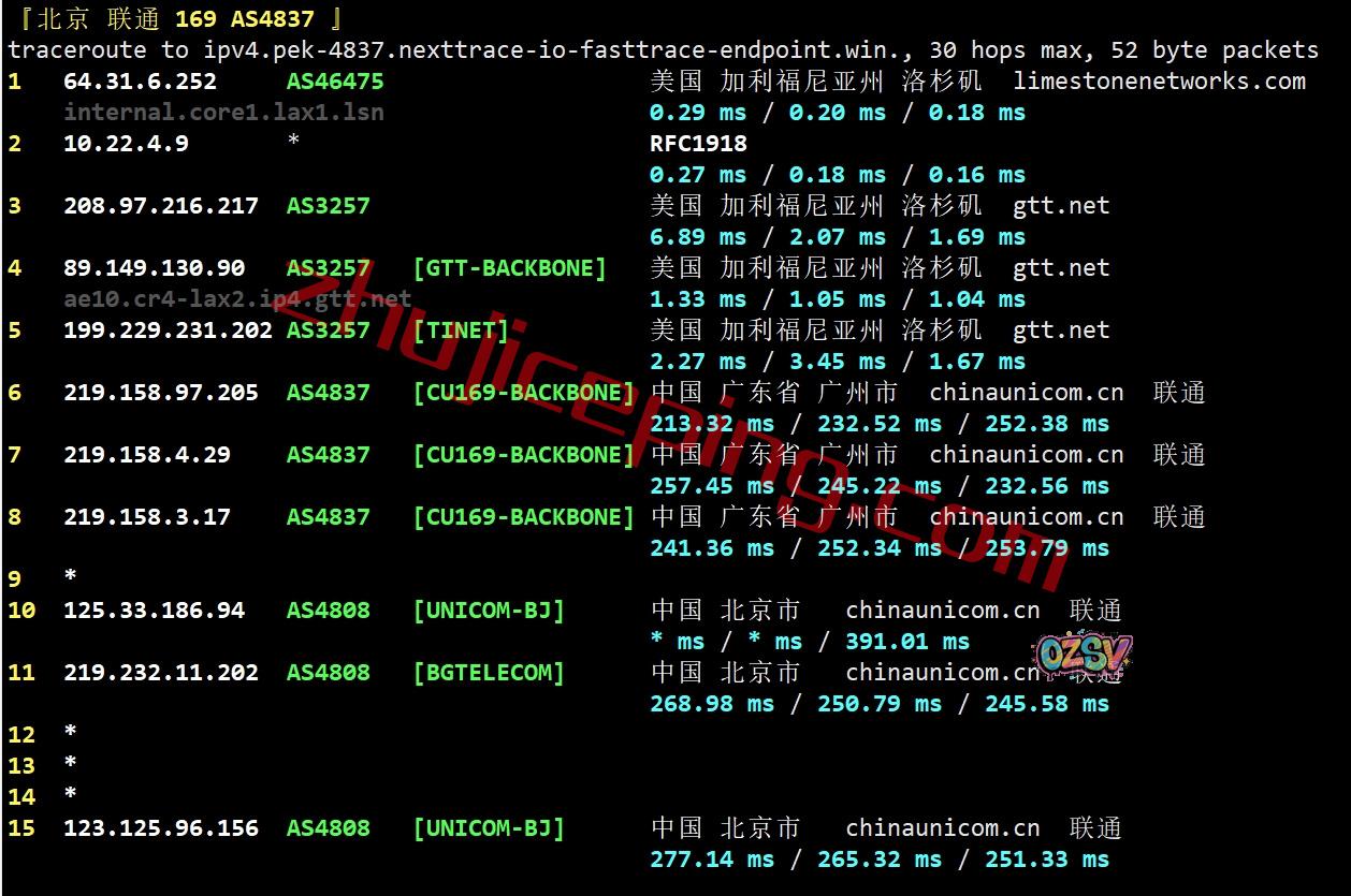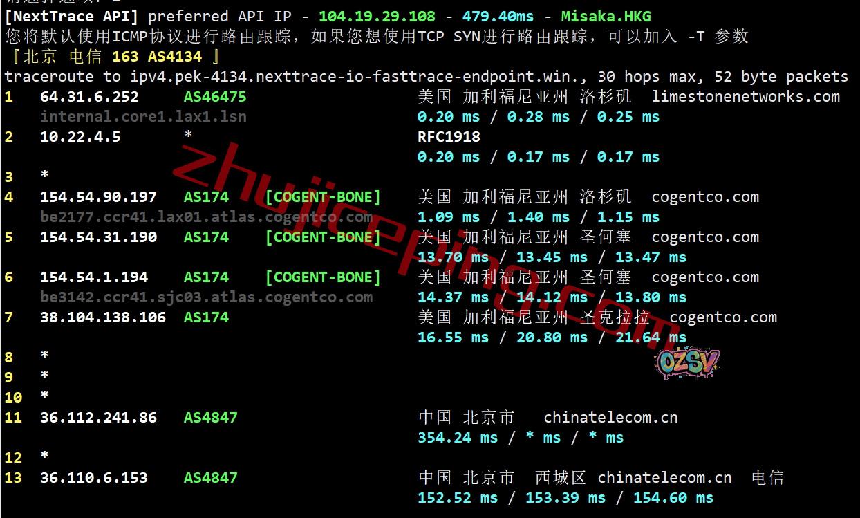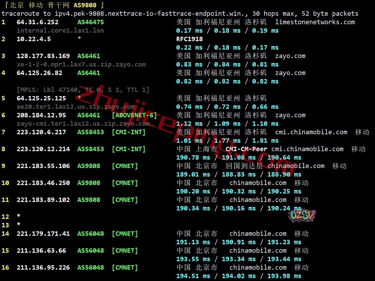 北京方向:走zayo到移动在洛杉矶的节点后直连回国