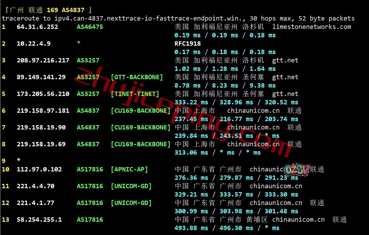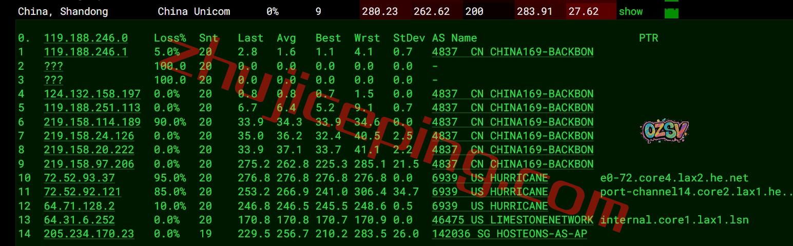 联通去程:直连联通洛杉矶节点,然后走HE.NET去机房