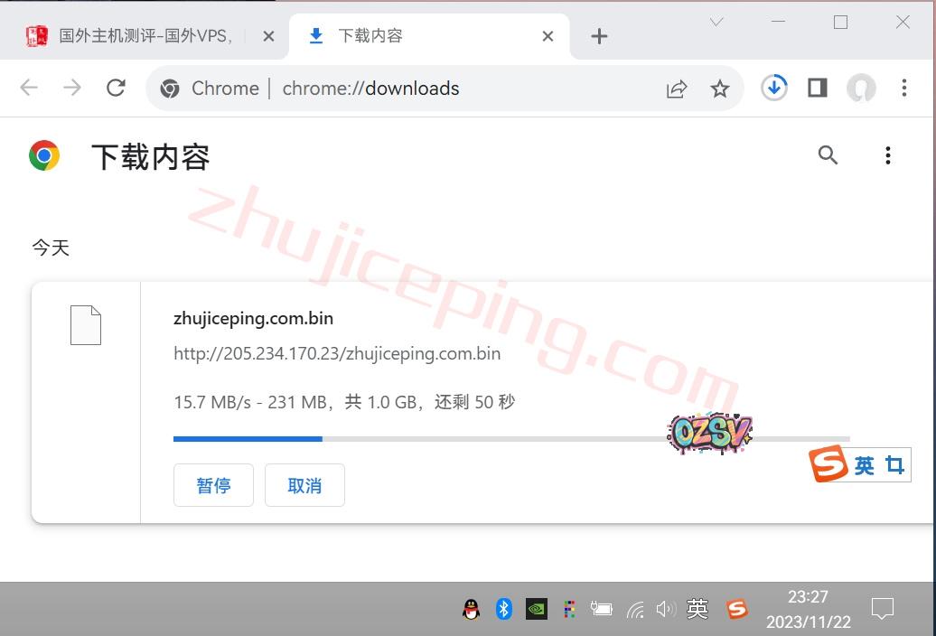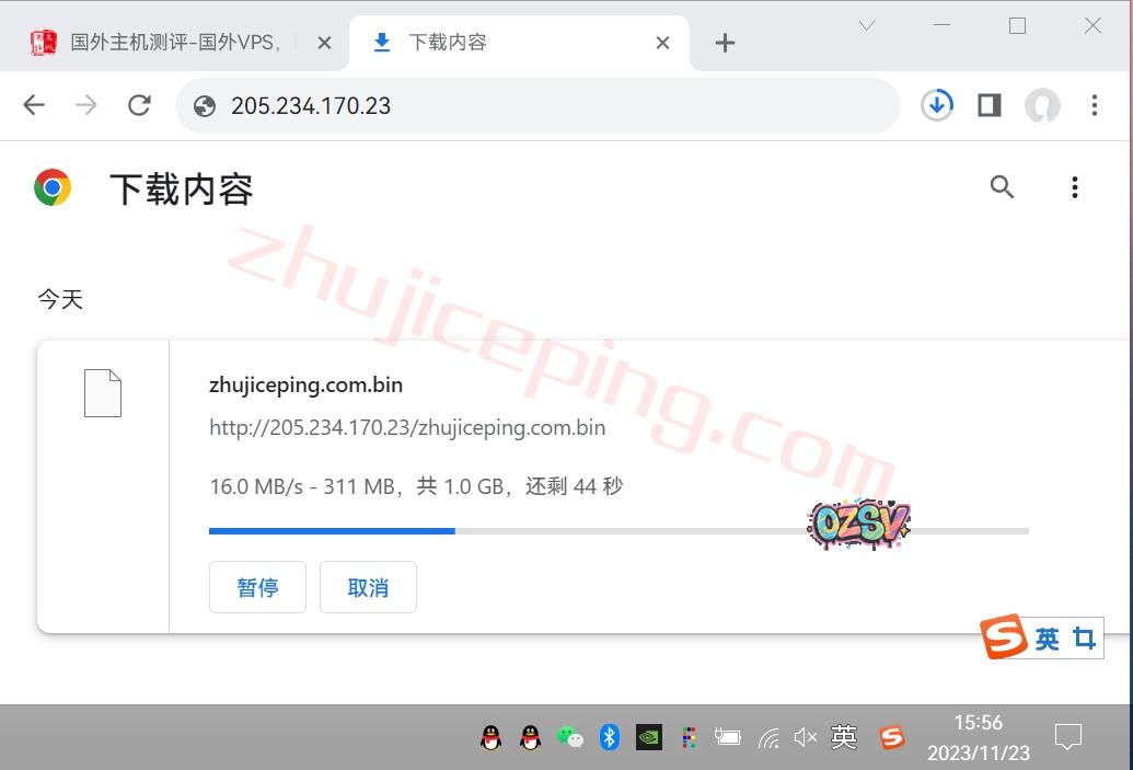 存放在测试小鸡上面的文件,广州联通家宽直接浏览器下载,大致速度: