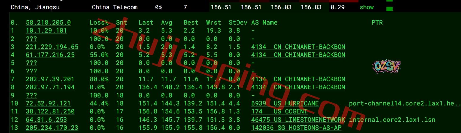 电信去程:直连电信洛杉矶节点,然后走he.net去机房