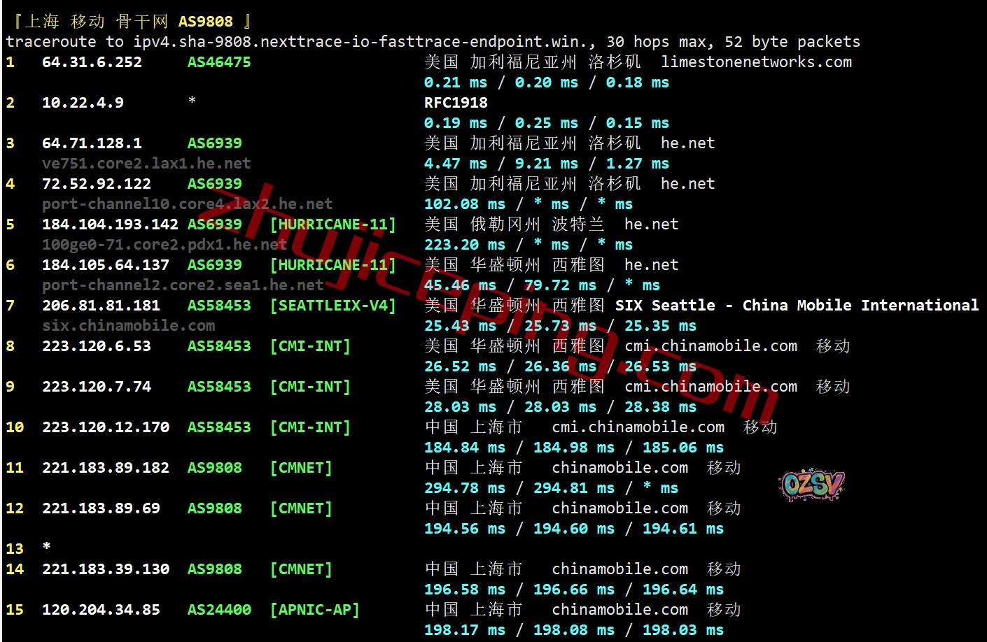 上海/广州方向:走HE.NET经过波特兰到西雅图,然后从移动在西雅图的节点直连回国