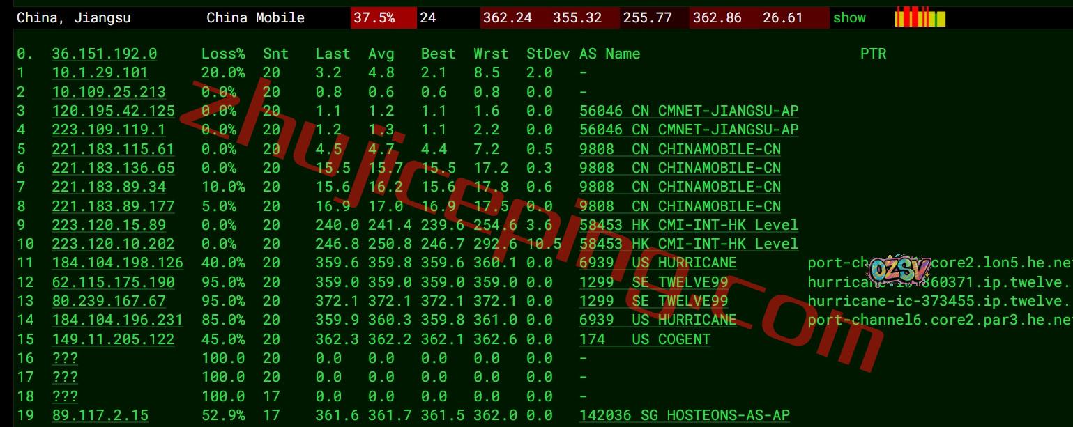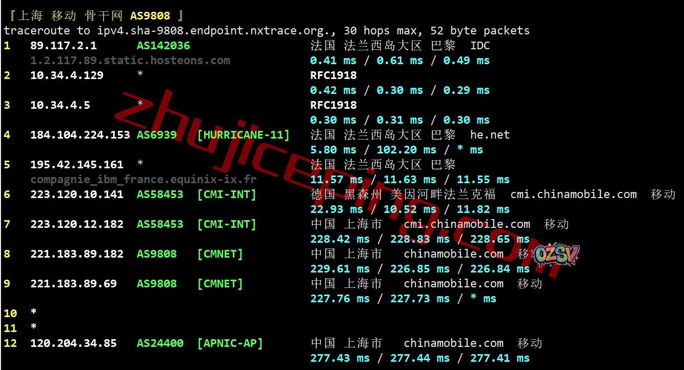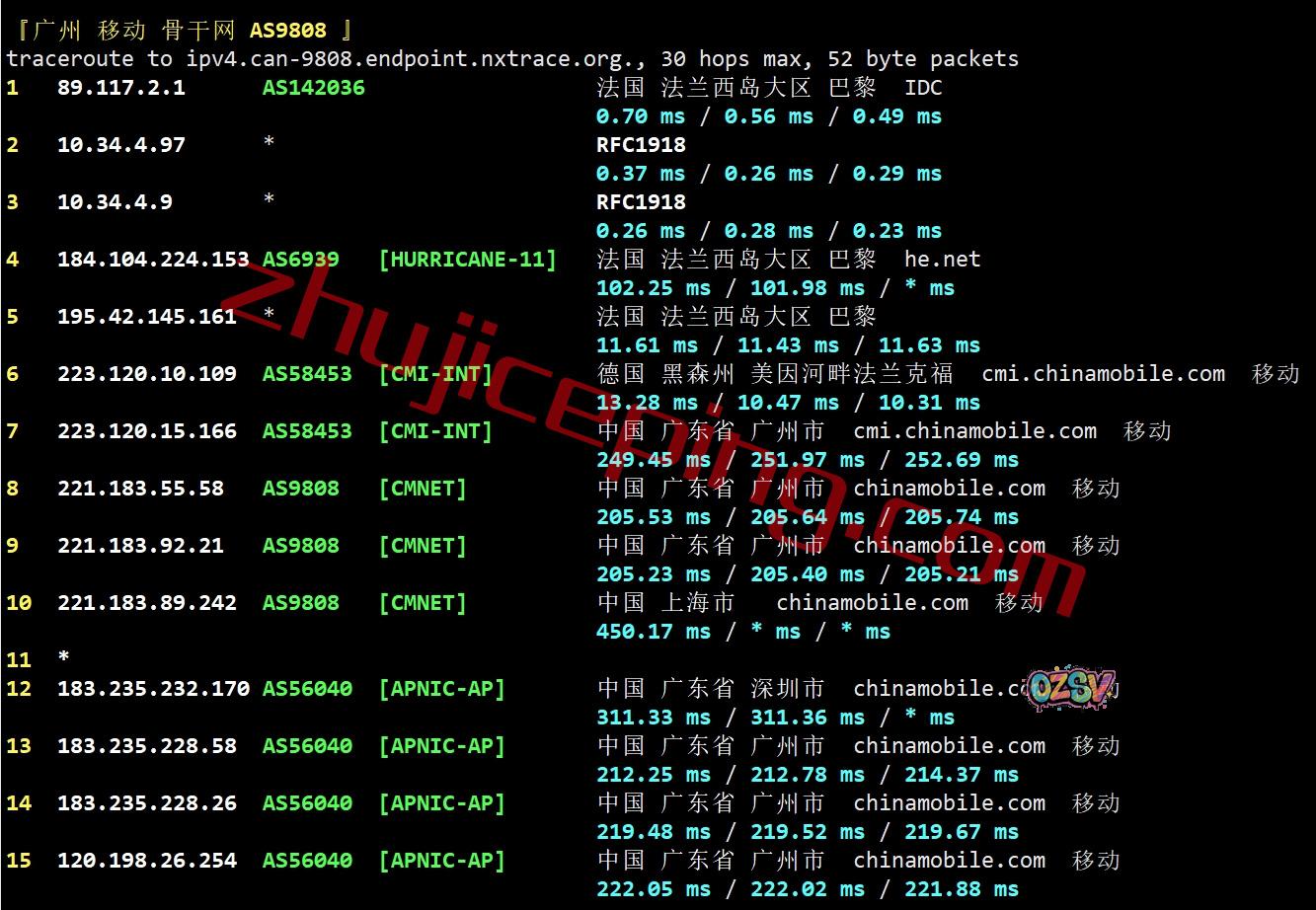 上海/广州方向:走he.net经过法兰克福,从移动法兰克福节点直连回国