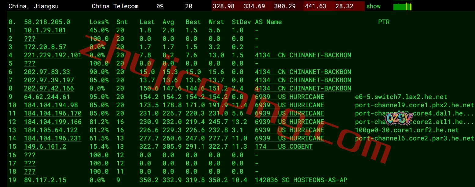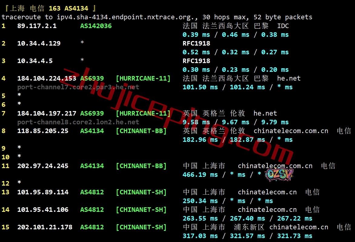 上海方向:走HE.NET到伦敦,从电信伦敦节点直连回国