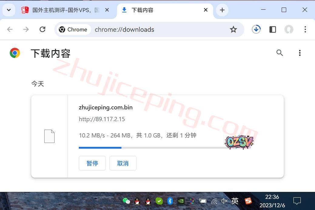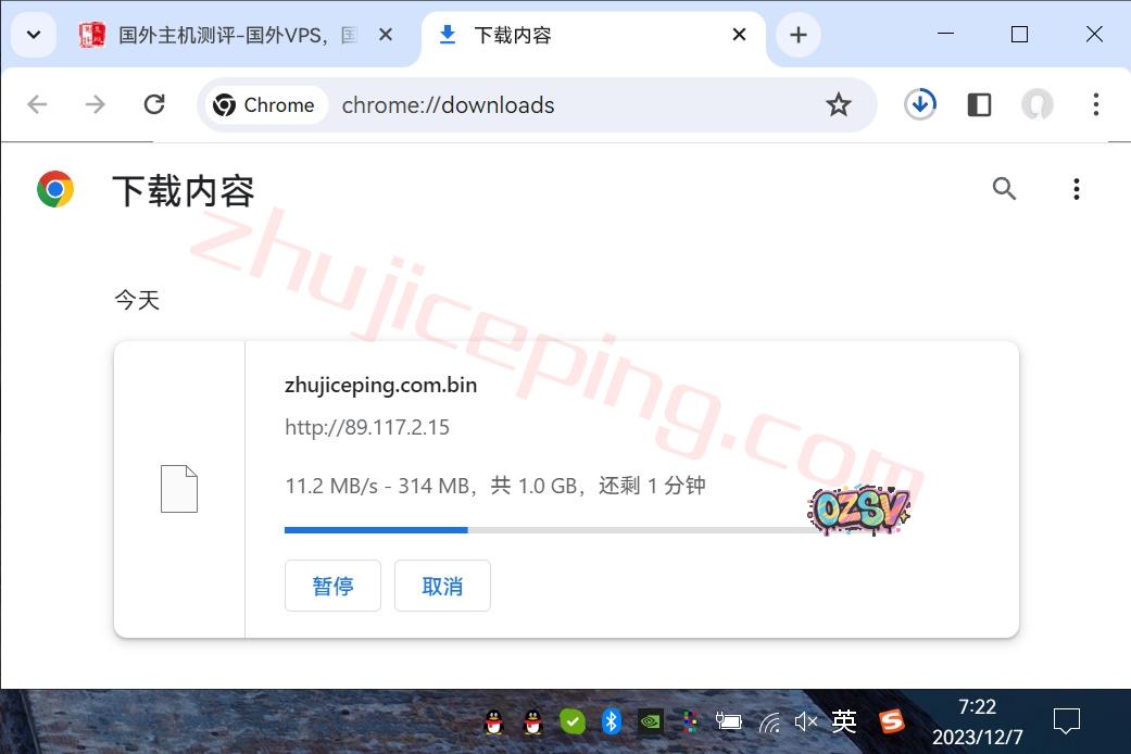存放在测试vps上面的文件,广州联通家宽,直接浏览器下载,大致数据如下: