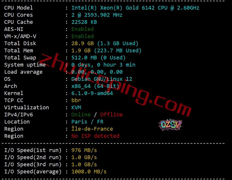 Intel Xeon Gold 6142,16核、32线程、主频2.6GHz、加速频率3.7GHz,启用了BBR,不支持IPv6,当前硬盘I/O大致在1008MB/S: