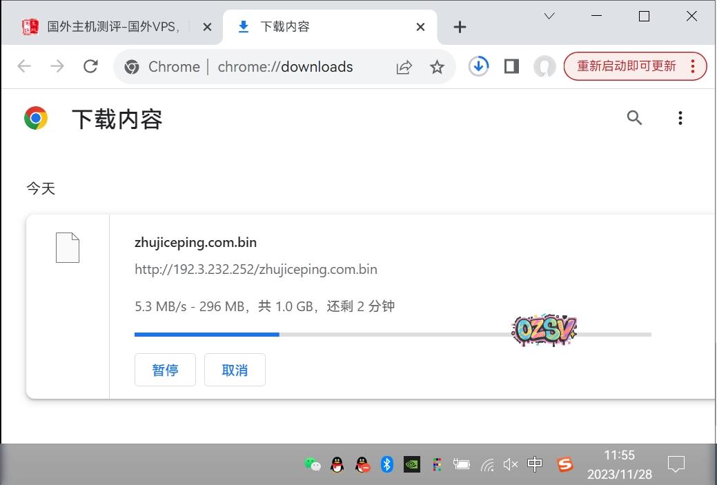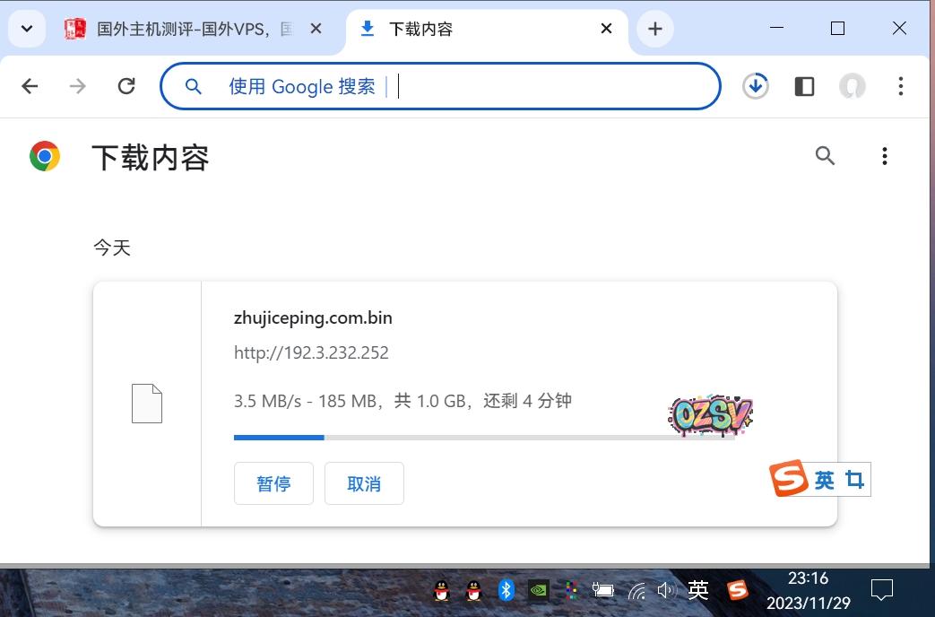 存放在测试VPS上的文件,广州联通家宽直接浏览器下载,大致速度: