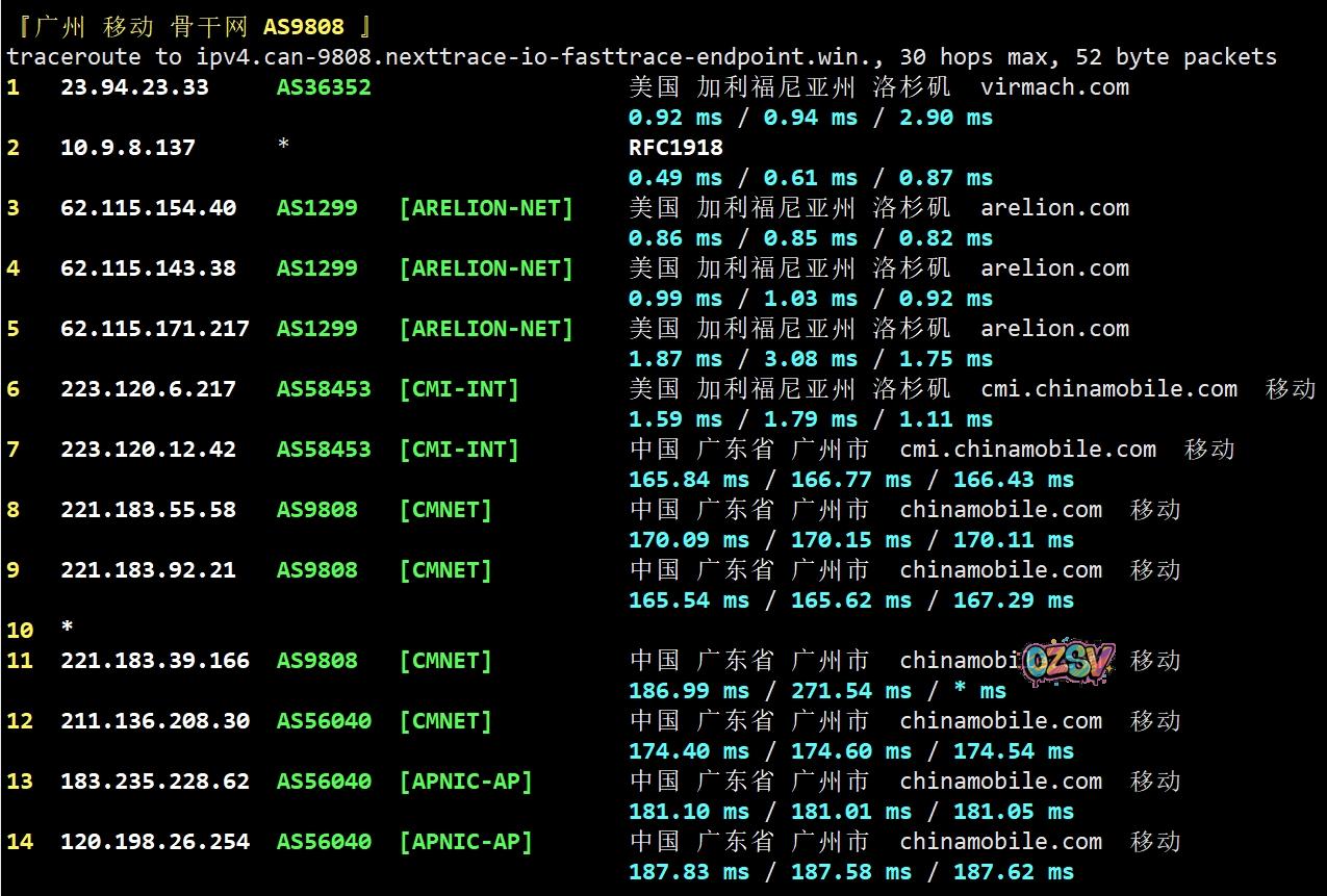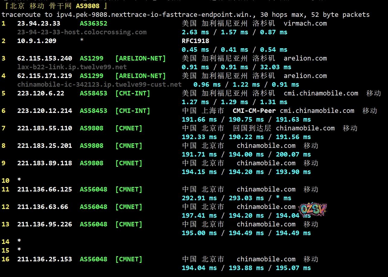 北京/广州方向:twelve99接移动在洛杉矶的peer,直连回国