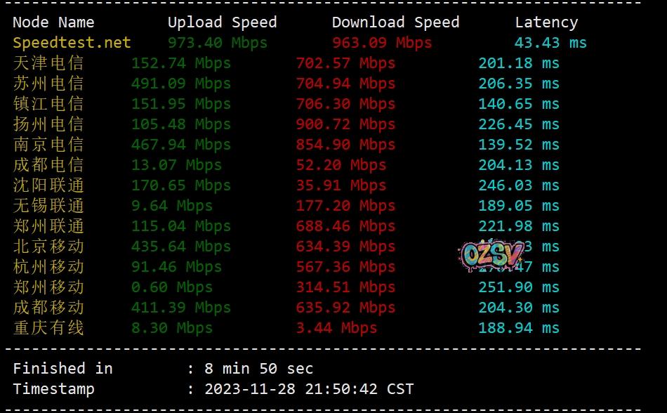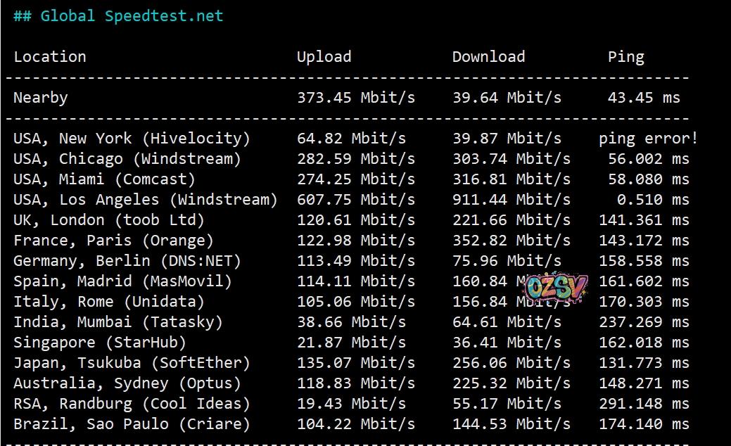 speedtest部分国际节点的测试数据: