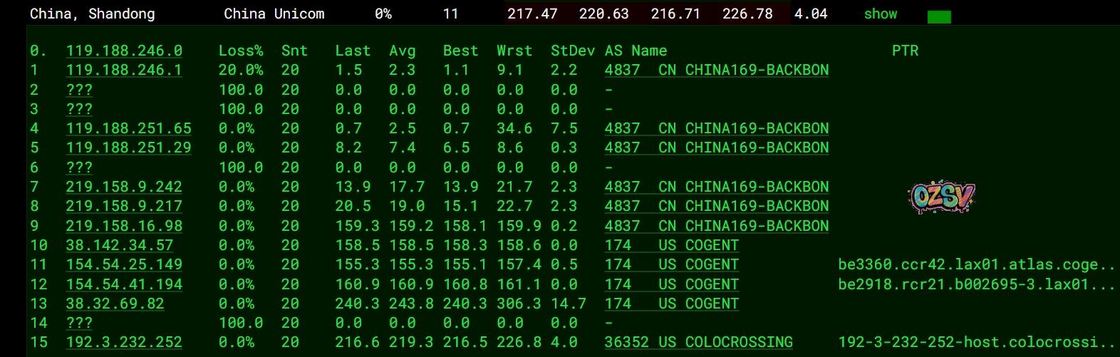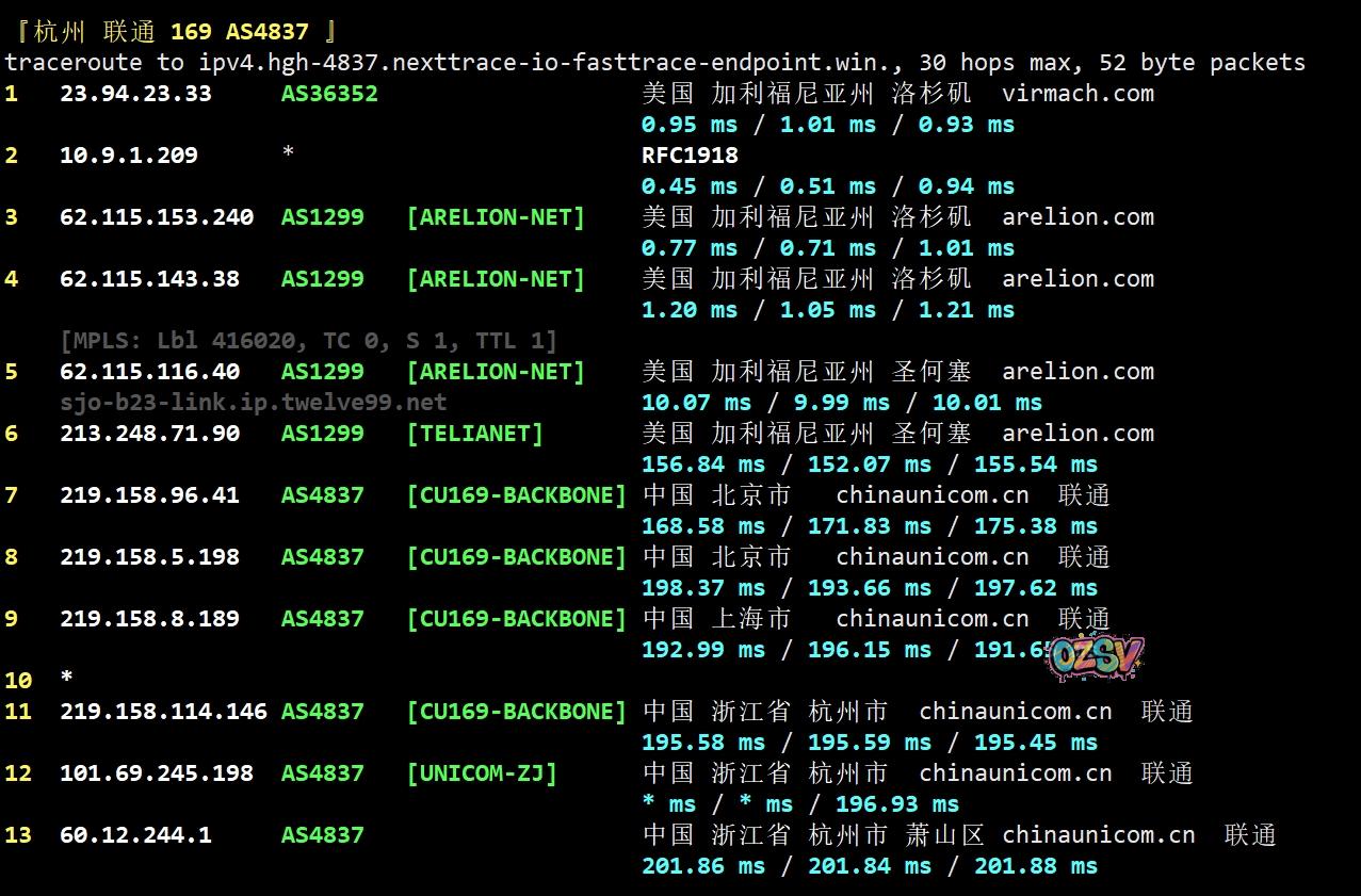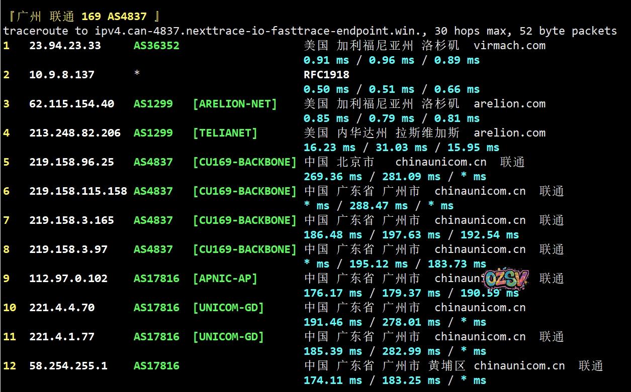 联通去程:直连联通洛杉矶节点然后走cogent去机房
