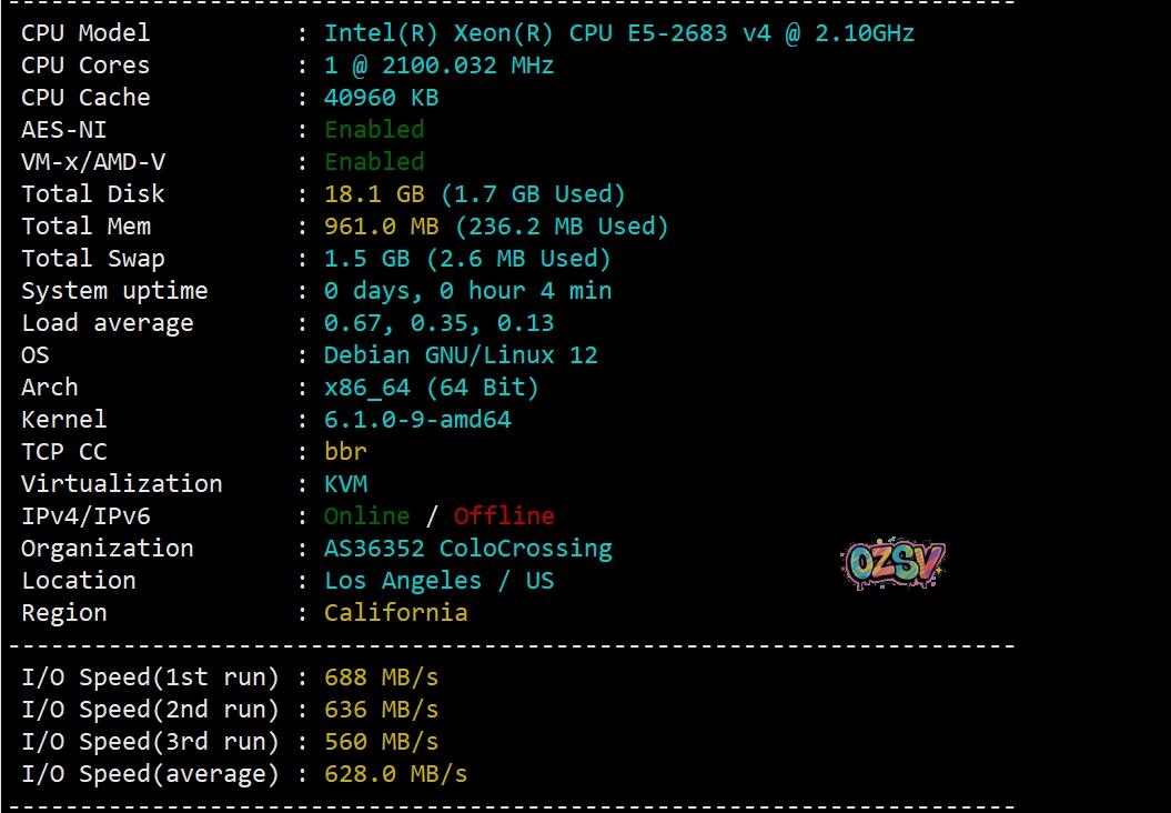 colocrossing旗下的VPS品牌在11月底上了洛杉矶数据中心,提供洛杉矶VPS业务,由于当时有特价低至10美元/年,所以这里就弄了一个给大家做个测评顺带再挂一个下载文件方便大家测试速度。当前colocrossing旗下的VPS默认为1Gbps带宽,每个月给20T流量月付3.95美元起(1G内存、1核、25G SSD),有提供Windows和linux常规发行版,有兴趣的自信研究下,本次测评的数据仅供参考。