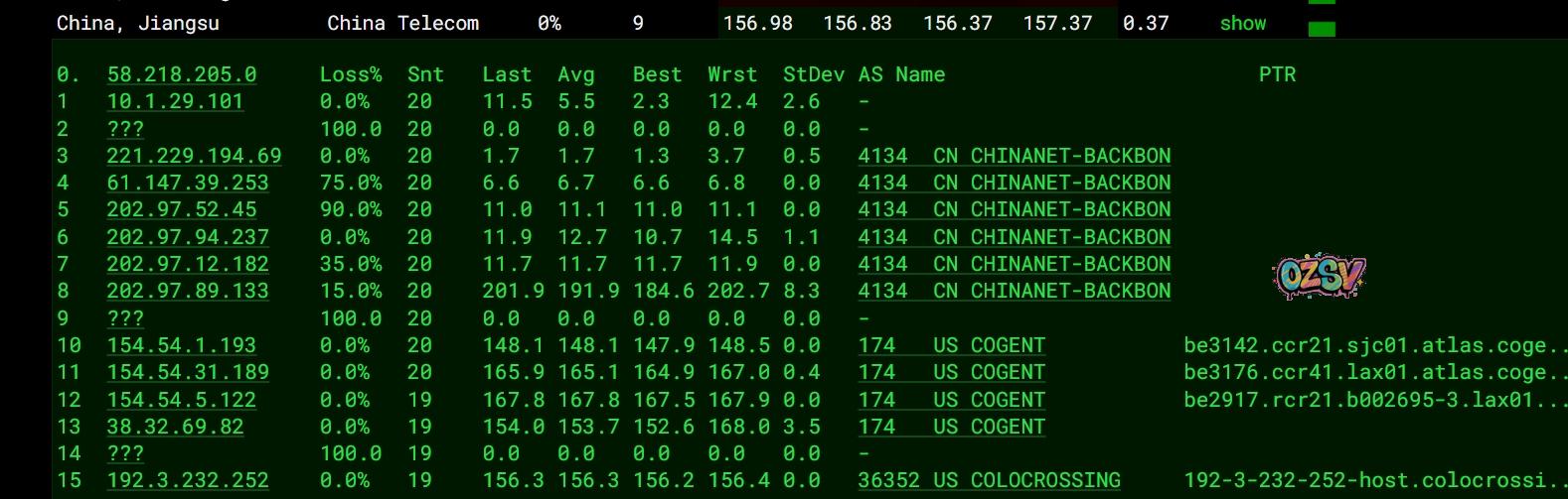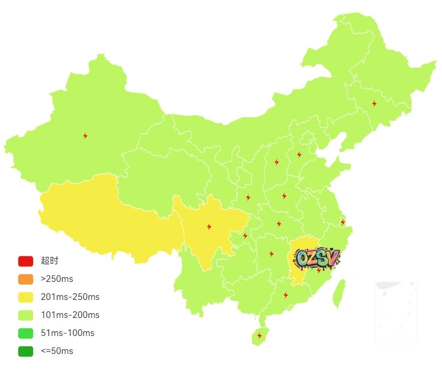 国内三网多节点的延迟测试数据: