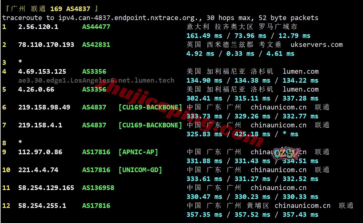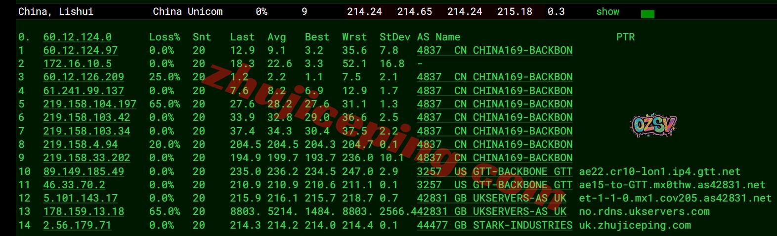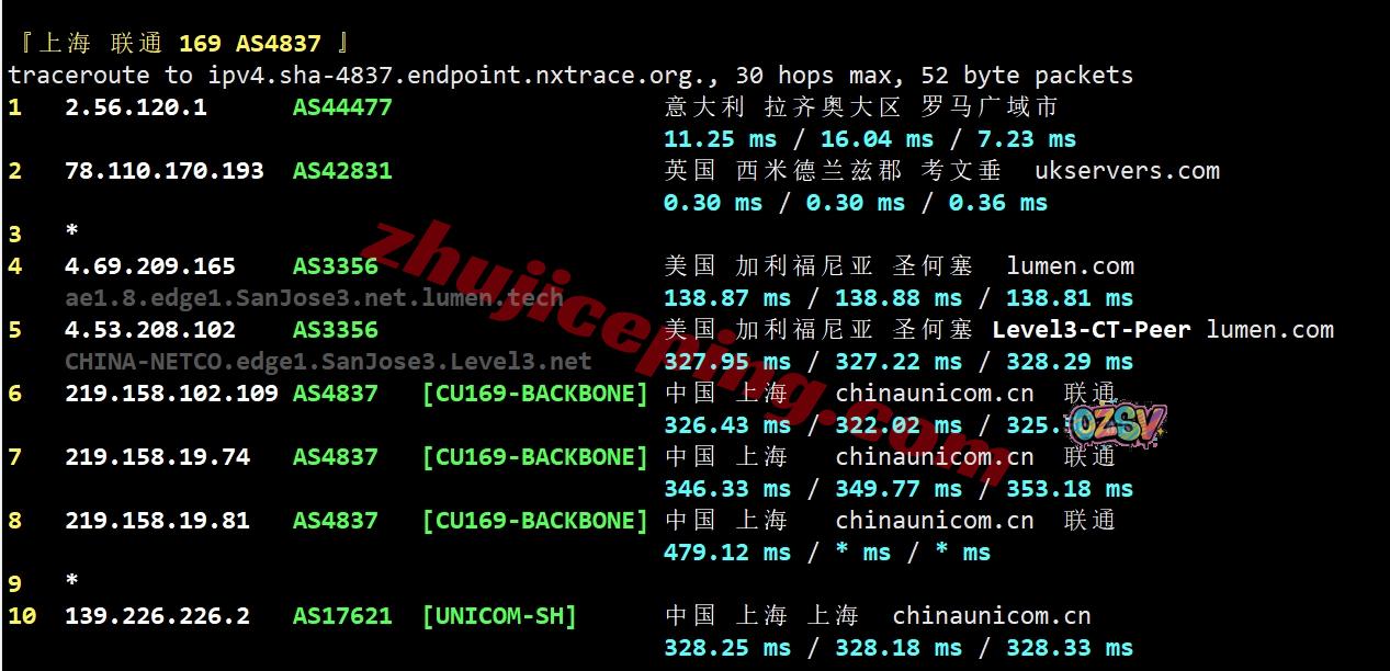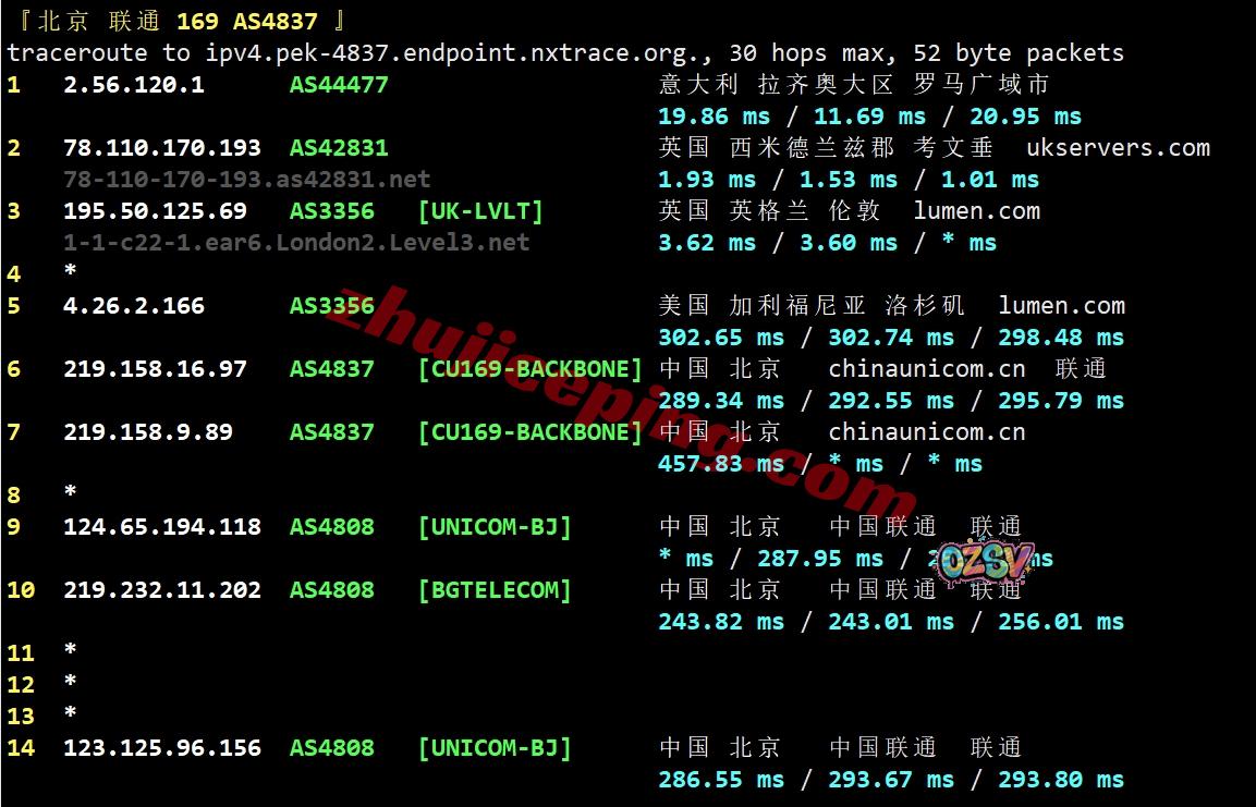 联通去程:直连联通德国法兰克福节点然后接GTT去英国