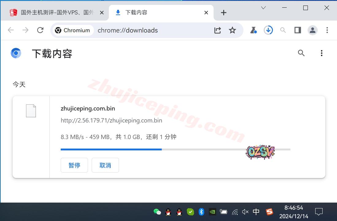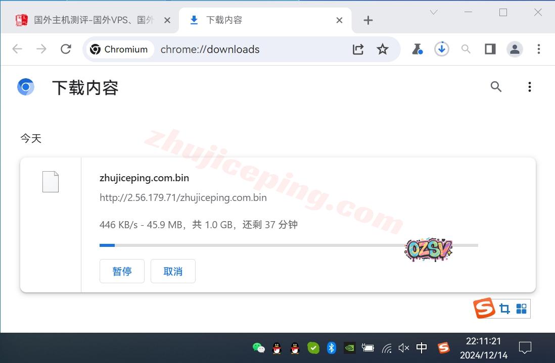 存放在VPS上的文件,广州联通家宽直接用浏览器下载该文件,大致的下载速度如下:
