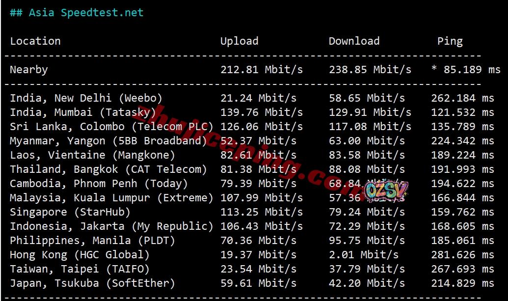 iperf3,几个常见的国际热门节点跑起来的数据:
