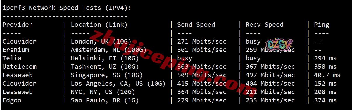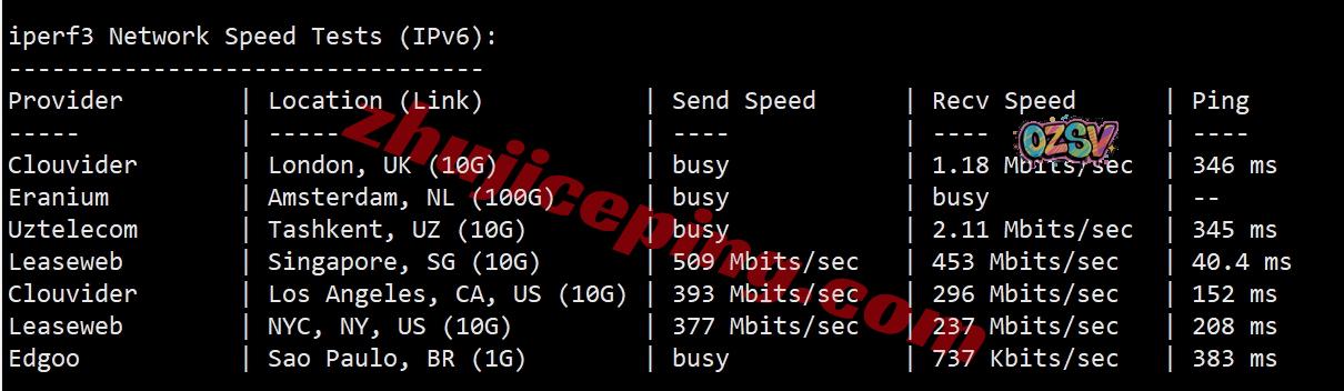 iperf3,还是那几个节点,只不过切换到了IPv6环境下,大致测试数据如下: