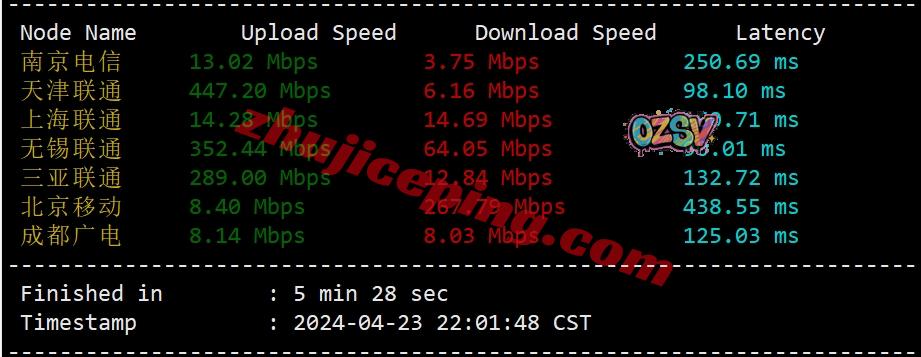 国内三网多节点的延迟测试数据: