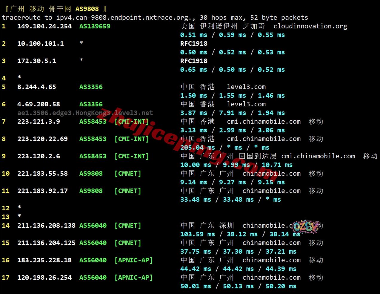 移动回程:香港level3转香港CMI然后直连回内地