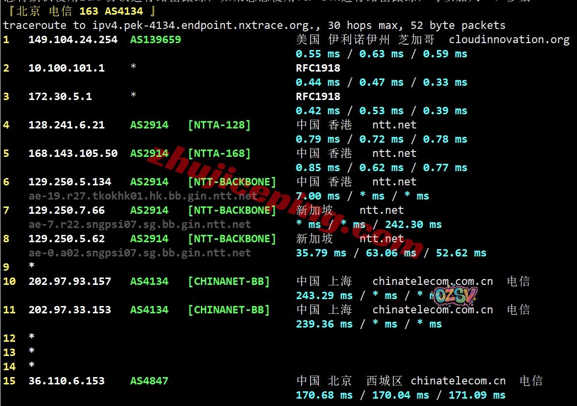 电信回程:香港NTT去新加坡NTT然后回国