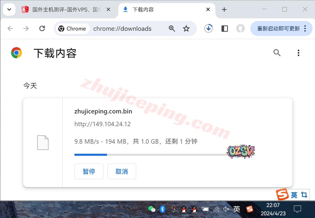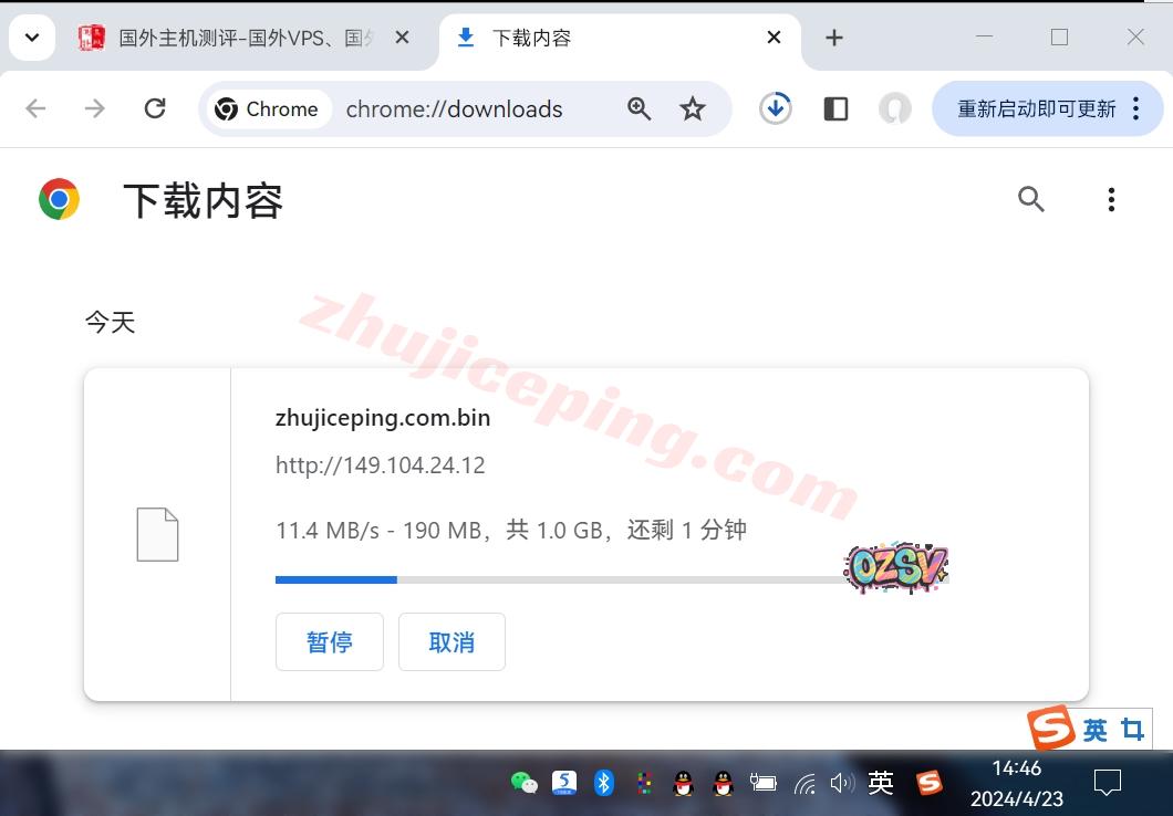 存放在测试VPS上的文件,广州联通家宽直接用Chrome下载,大致速度如下: