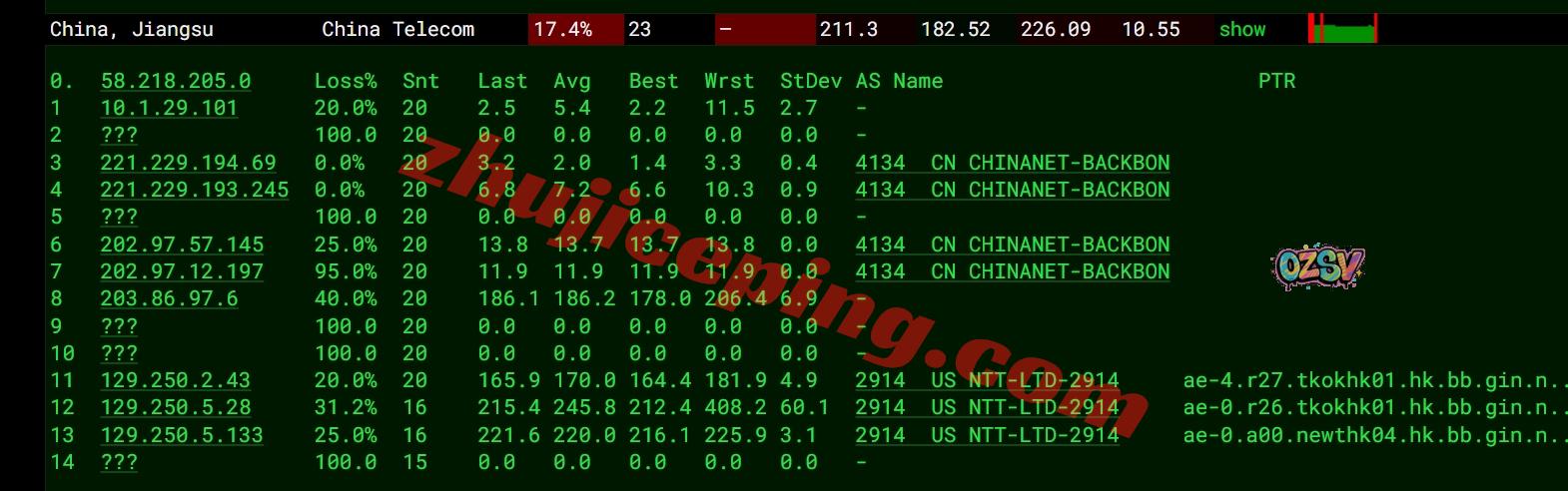 电信去程:骨干网对接NTT去香港