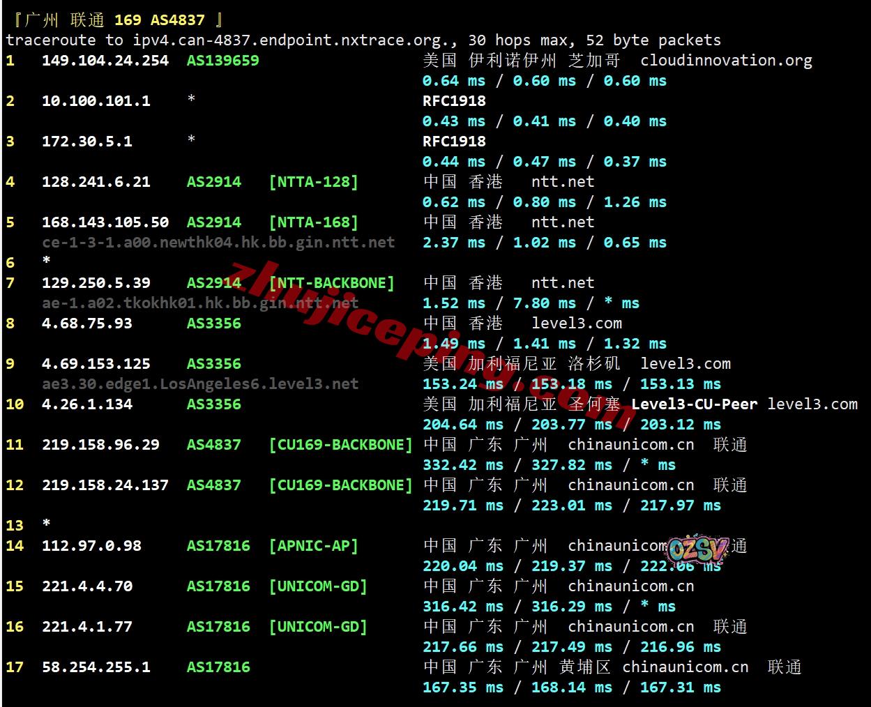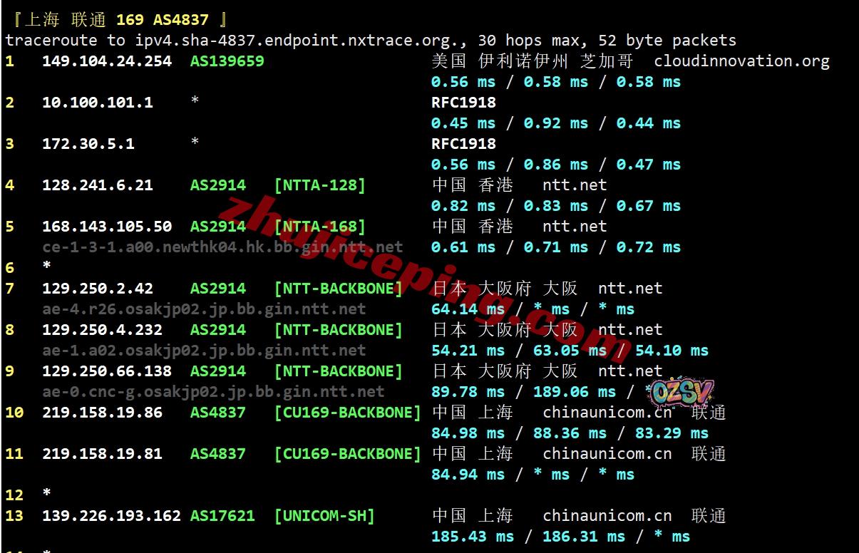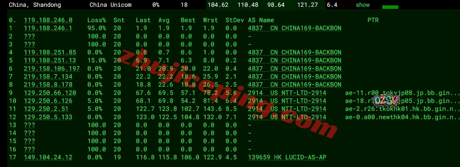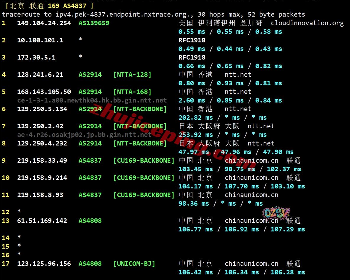 联通去程:骨干网对接NTT先去日本后回香港