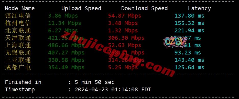国内三网多节点的带宽上下行测试,EDT比GMT+8晚了13个小时,也就是国内下午2点多测试的: