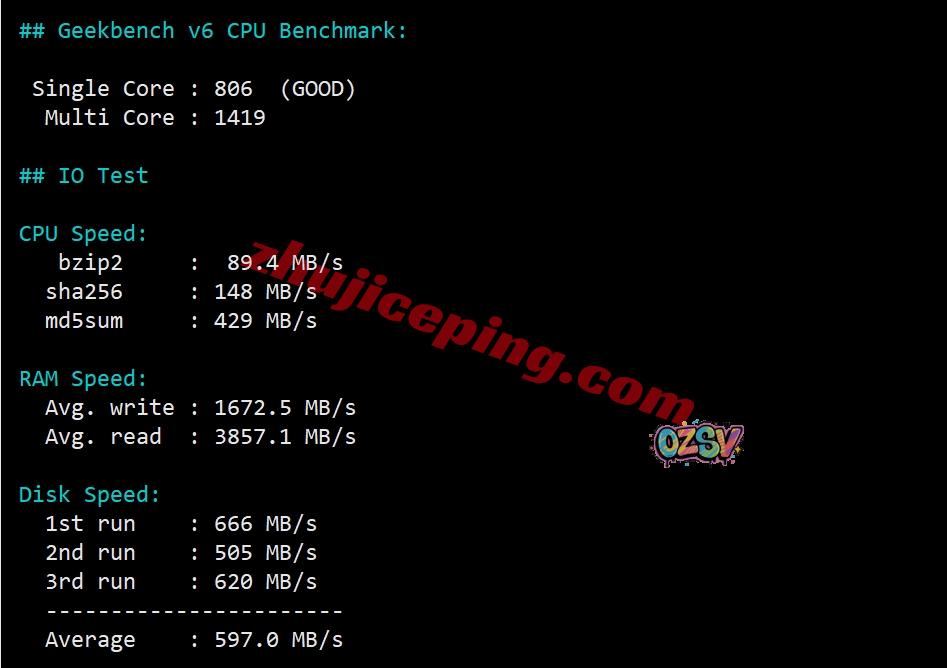 当前VPS性能还可以,不算差,中等水准吧;